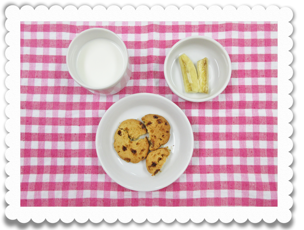 【幼児おやつ】牛乳、黒糖サブレ、果物