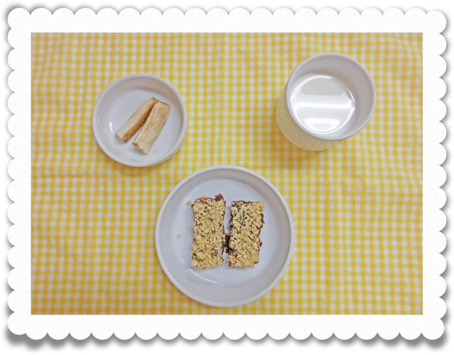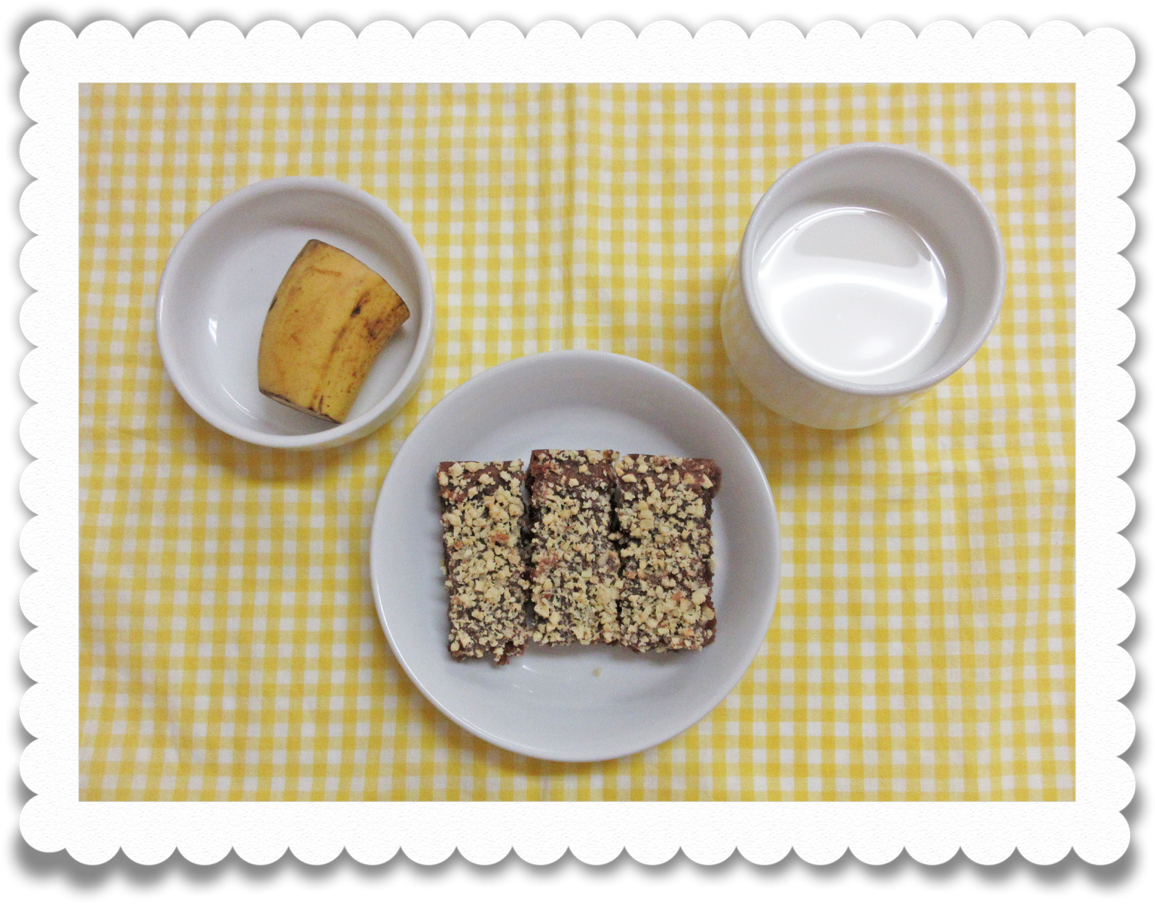 午後食:牛乳、高野豆腐のココアパン、果物