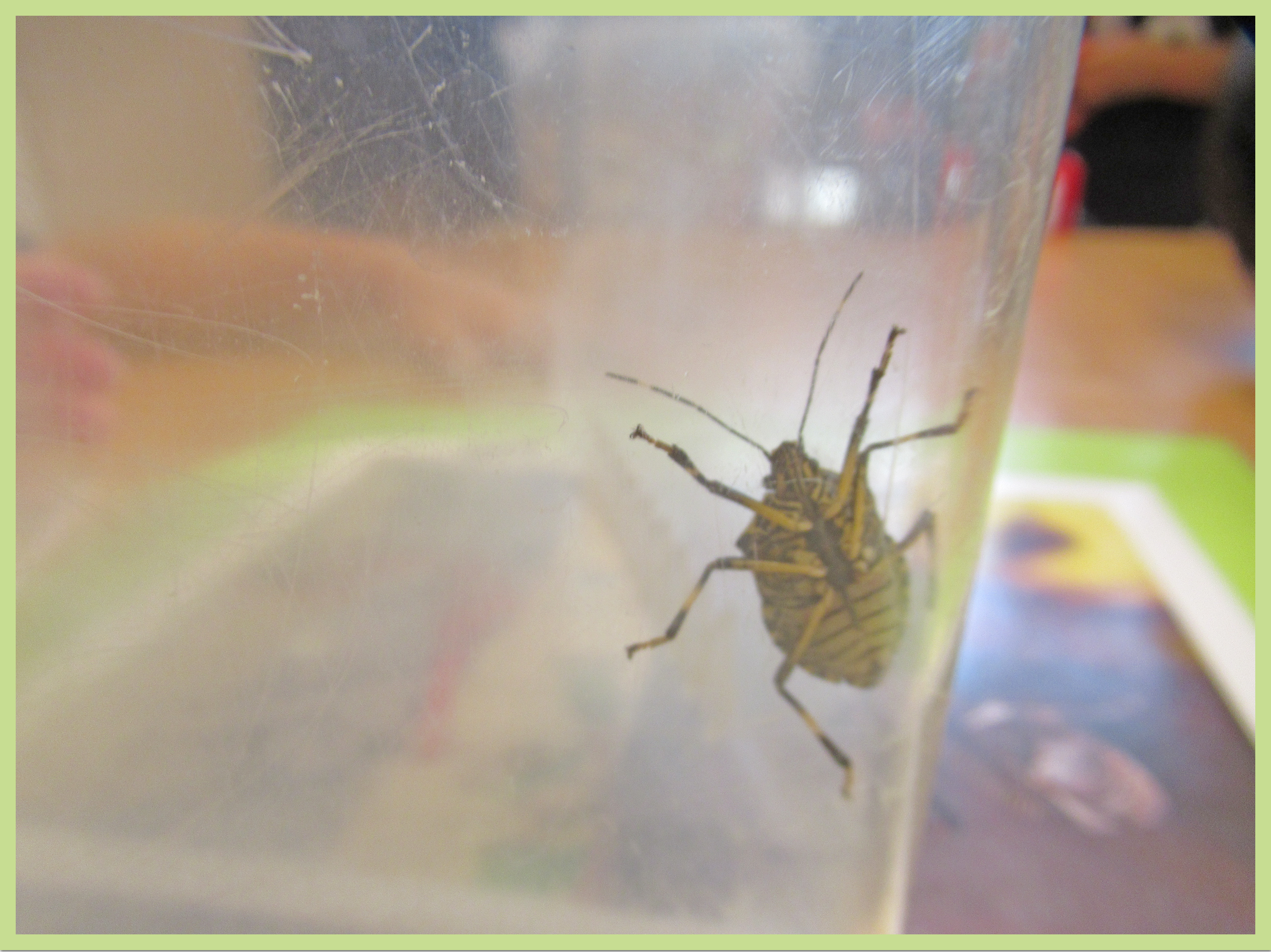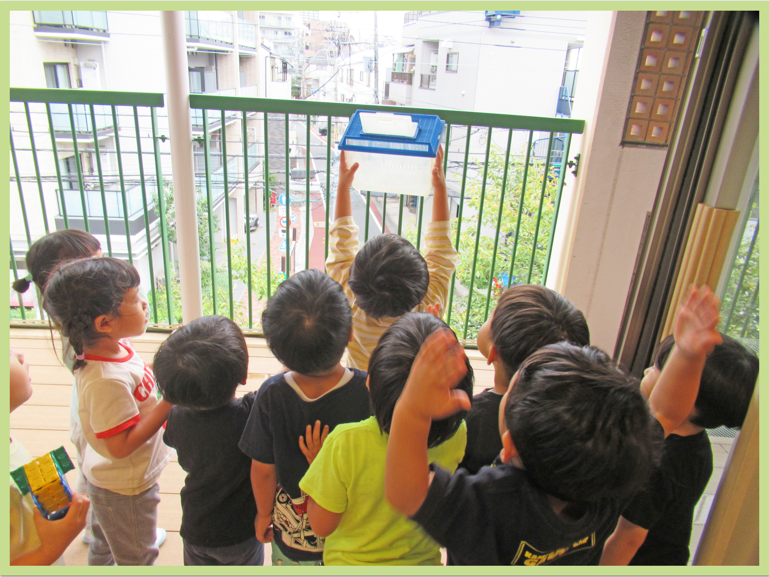 朝の会でカメムシさんとお別れしました。すっかり愛着が沸いたようで「カメムシさん、明日お弁当持ってきてね~!一緒に鮫洲公園に遠足行こうね~!」と声をかける姿があり、微笑ましかったです。