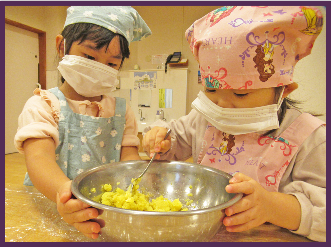 4歳児とんぼ組さんは、芋ほりでこどもたちが収穫したサツマイモを使って『スイートポテト』作りをしました。
