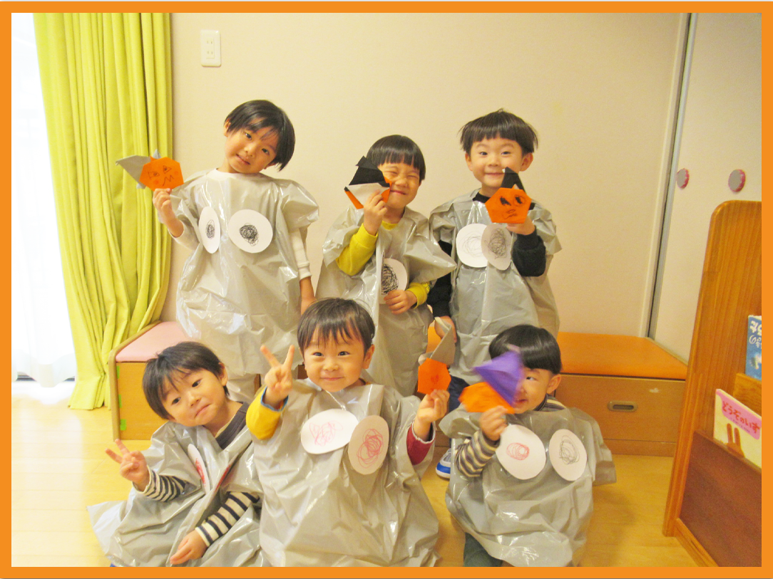 ハロウィンパーティーは大成功!みつばち組の小さなおばけたちはいたずら好きです。