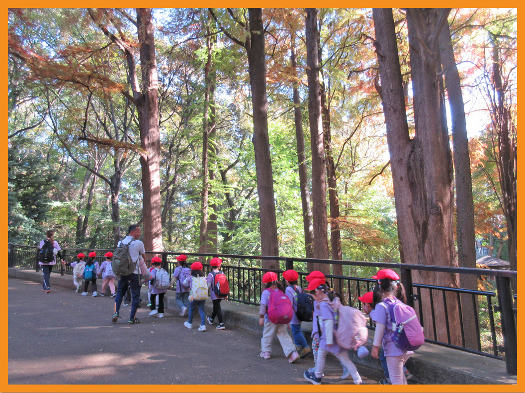 今日は待ちにまった園外保育です。「あと何回寝たら園外保育なの?」と何日も前から楽しみにしている様子がこどもたちの発言からひしひしと伝わってきました。「あと〇日!」とカウントダウンする子もおり、そんな姿にもこどもたちの成長を感じています。