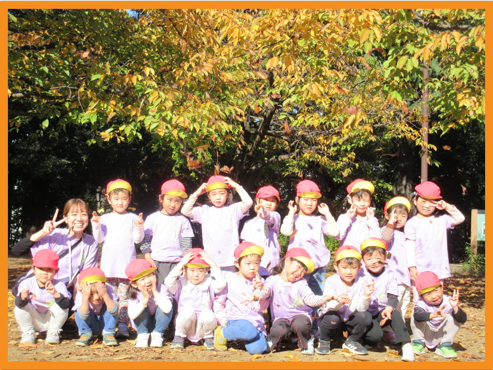 また、今回は初めてのバスを利用した園外保育ということでこどもたちも気合い十分でした。「バスの中では静かに過ごす」ということを一人ひとりが意識して過ごしている姿があり、とても頼もしかったです。公園までの道のりにも様々な木の実が落ちており、終始こどもたちの目は輝いていました。
