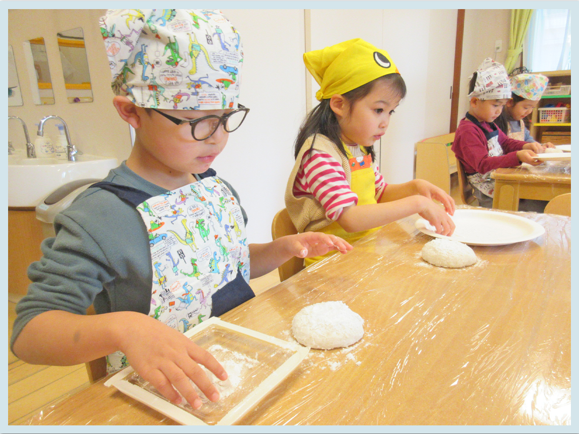 最後は保育園を代表して5歳児クラスのこどもたちが、餅を丸めて鏡餅を作ってくれました。餅が乾いたら園内に飾る予定です。行事を通してなかなか出来ない貴重な経験ができました!