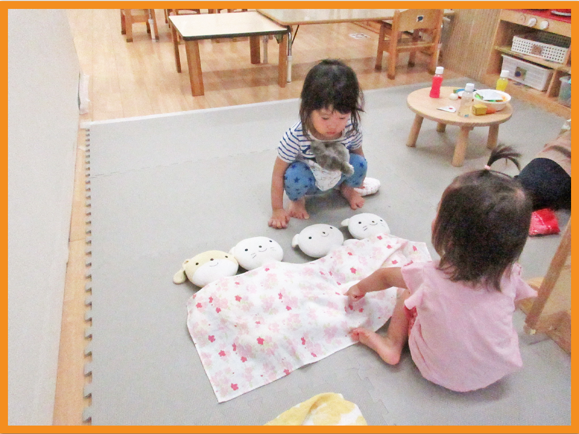 1歳児のお友だちは、2歳児から多くの刺激を受け、語彙が増えてきましたよ。