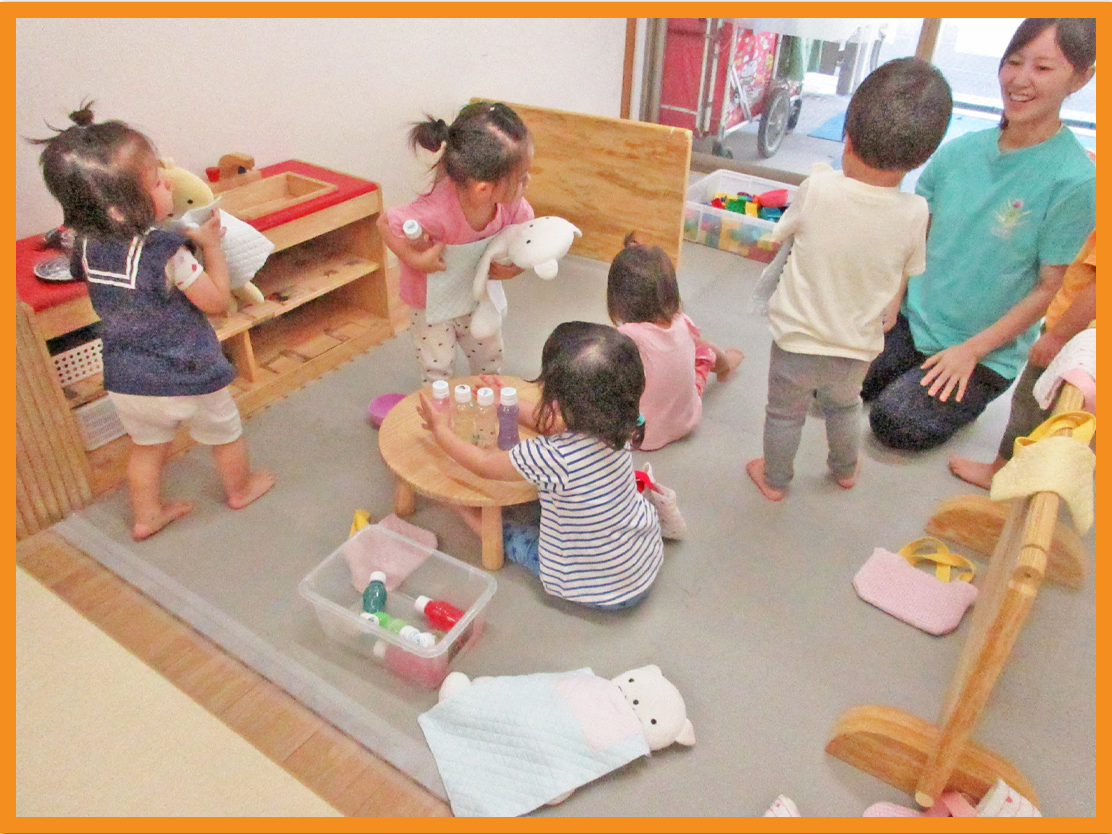 お人形のお世話遊びが楽しいようでジュースをあげたり、ご飯を作ってあげたりしていました。