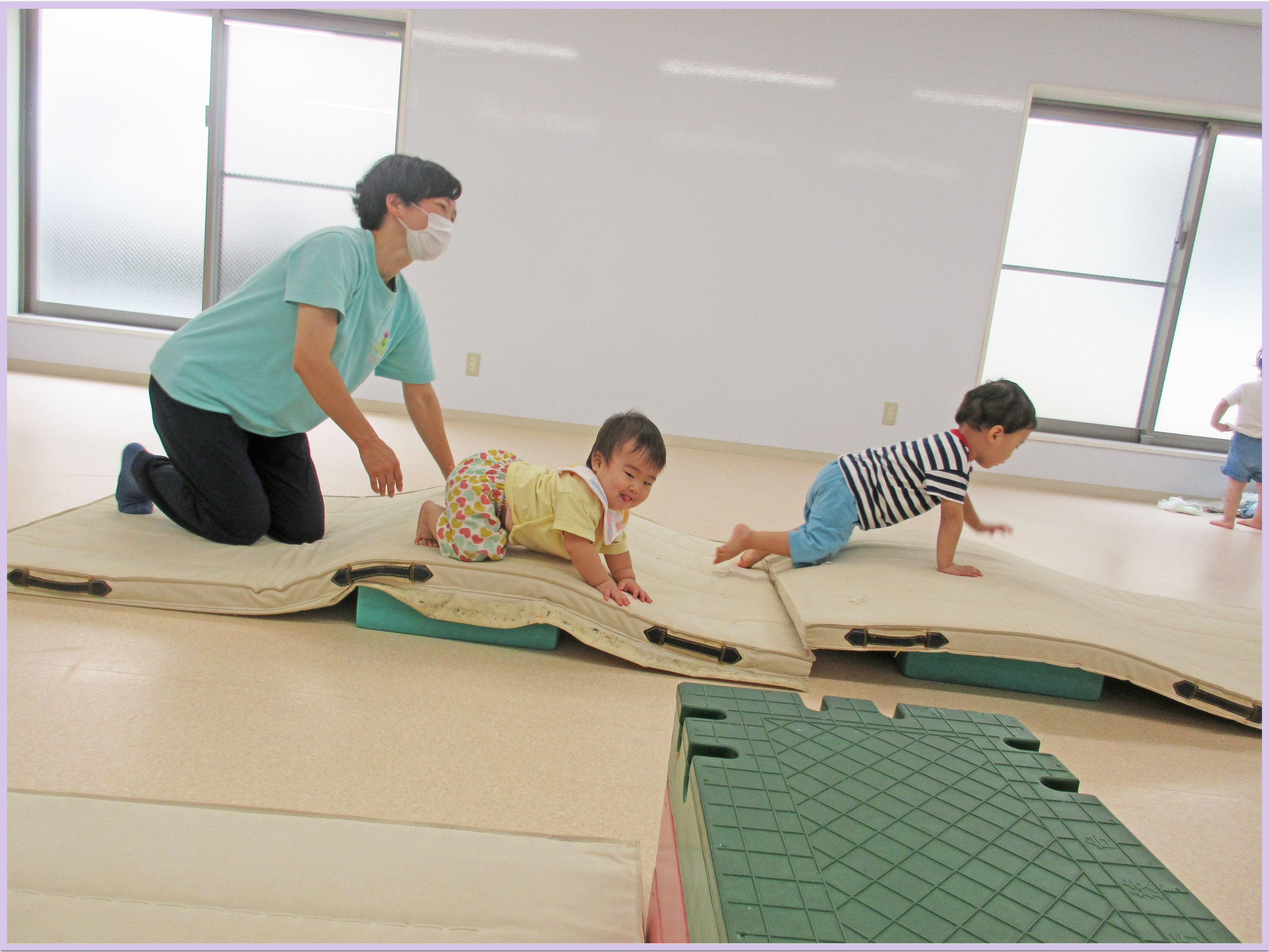 0歳児、1歳児ともに楽しめるように、マットの山をメインにしました。
