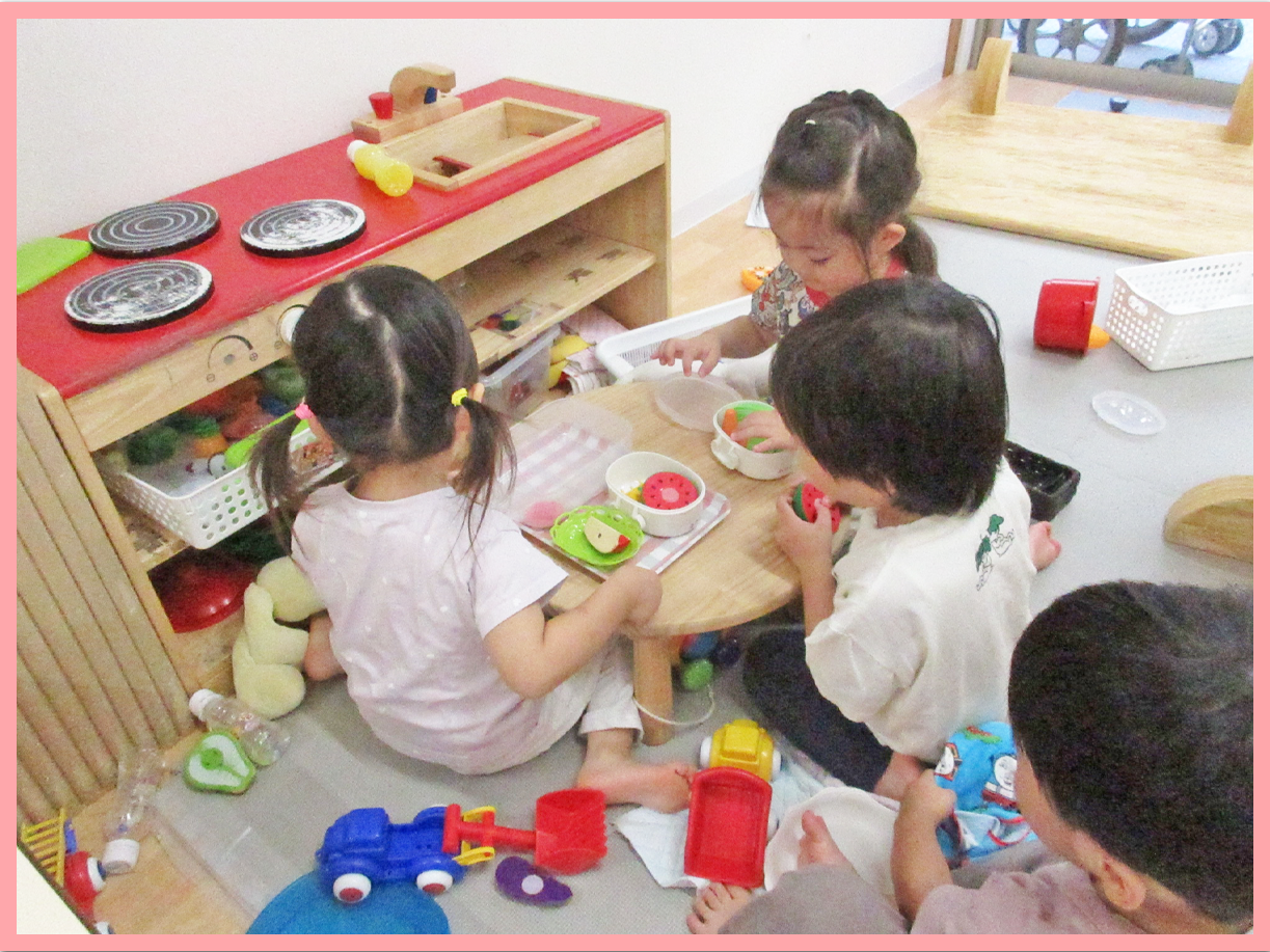 人形を病院へ連れて行ったり、ご飯を作ったりとお世話遊びを楽しんでいました。