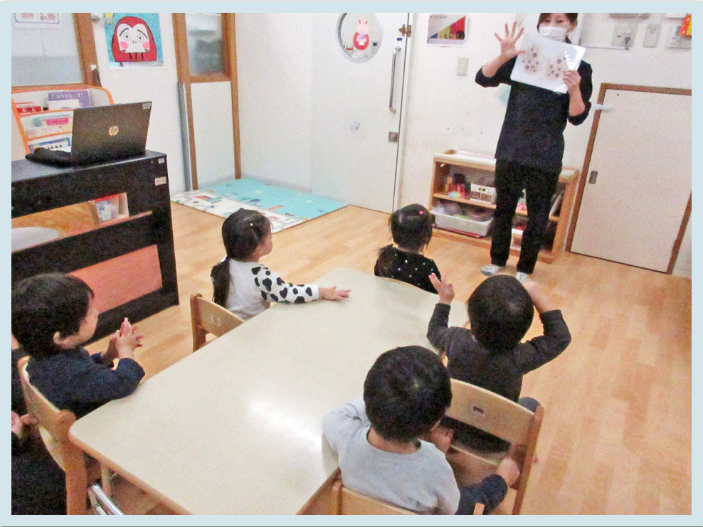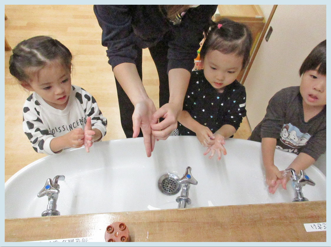 手洗いにもたくさんのポーズがあることを知り、一緒に手を動かしながら楽しんでいましたよ♪