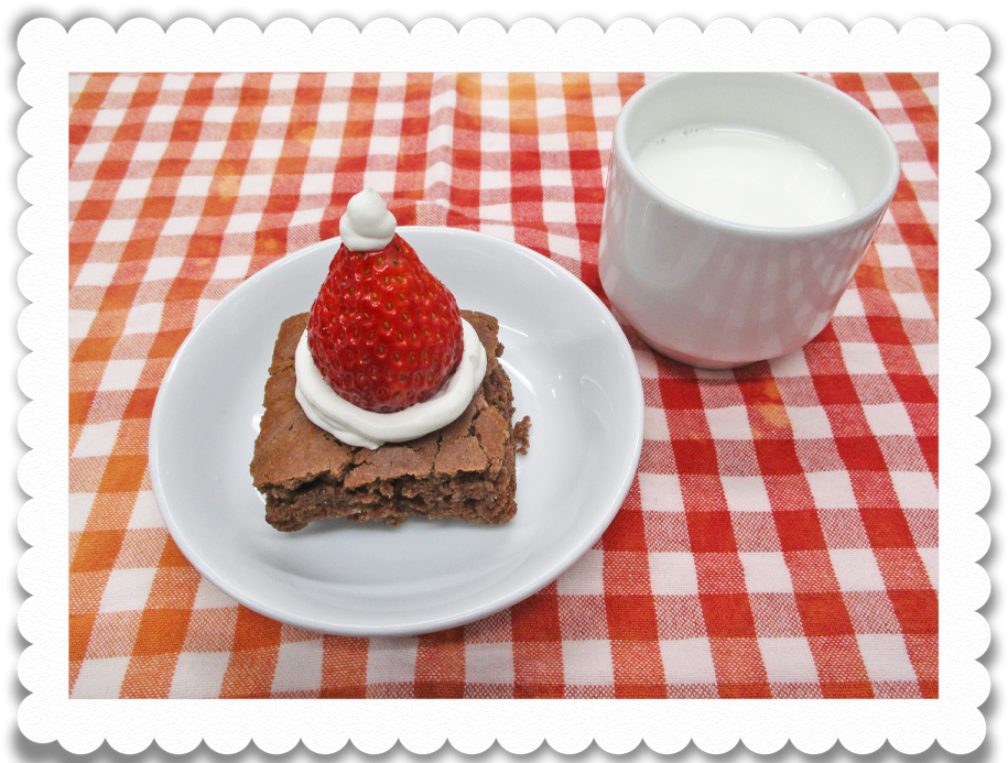 午後食: 牛乳、クリスマスケーキ