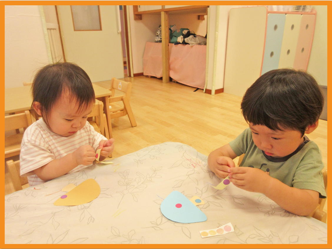 素敵な作品が完成し、お部屋に飾ると嬉しそうに指をさして製作した事を教えてくれるこどもたちでした。