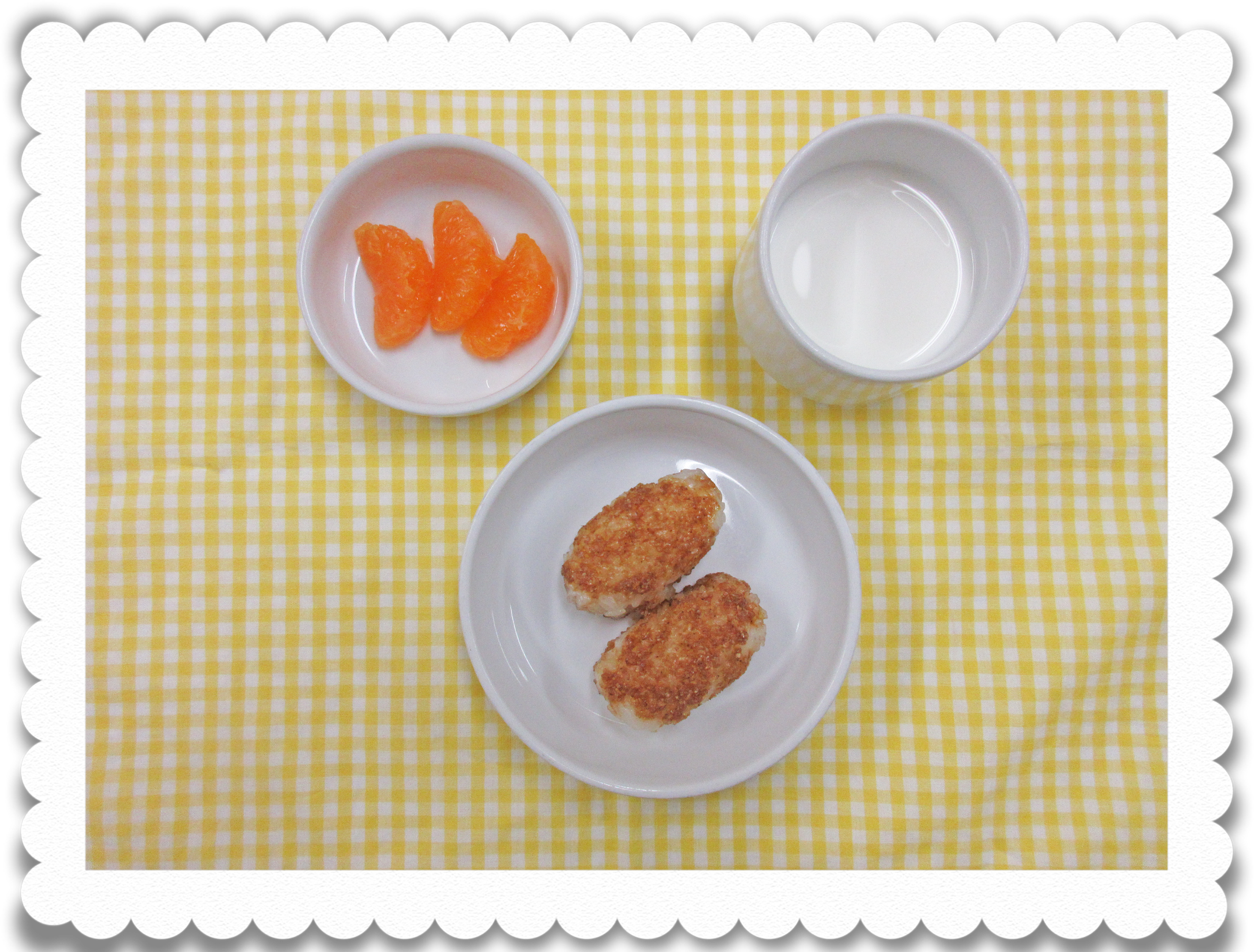 午後食:スープパン粥、豆腐のミルクみそ煮、ベジタブルスープ、果物