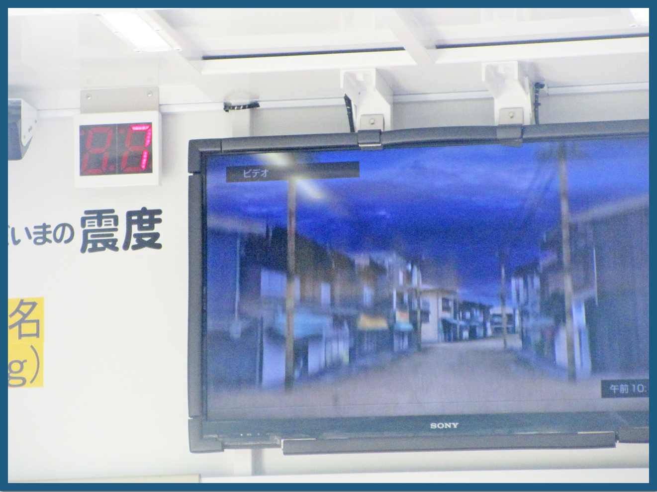 起震車内には、震度の数字と映像が流れ、電柱の倒れる様子を真剣に見ていたこどもたちでした。