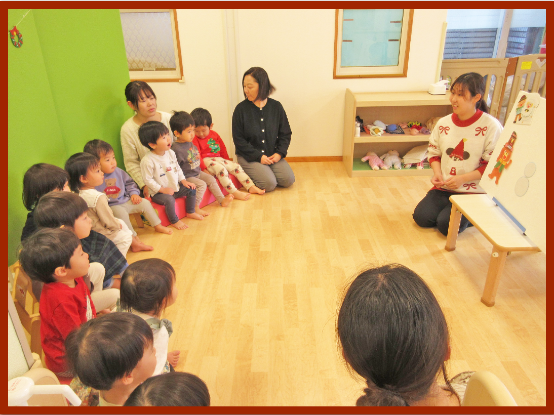 1歳児クラスは「クリスマスのうたがきこえてくるよ」というパネルシアターを見ました。