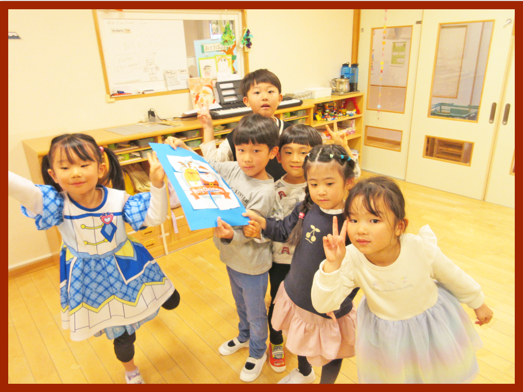サンタさんからのお手紙とプレゼントを受け取り「やったー」と喜んでいました。