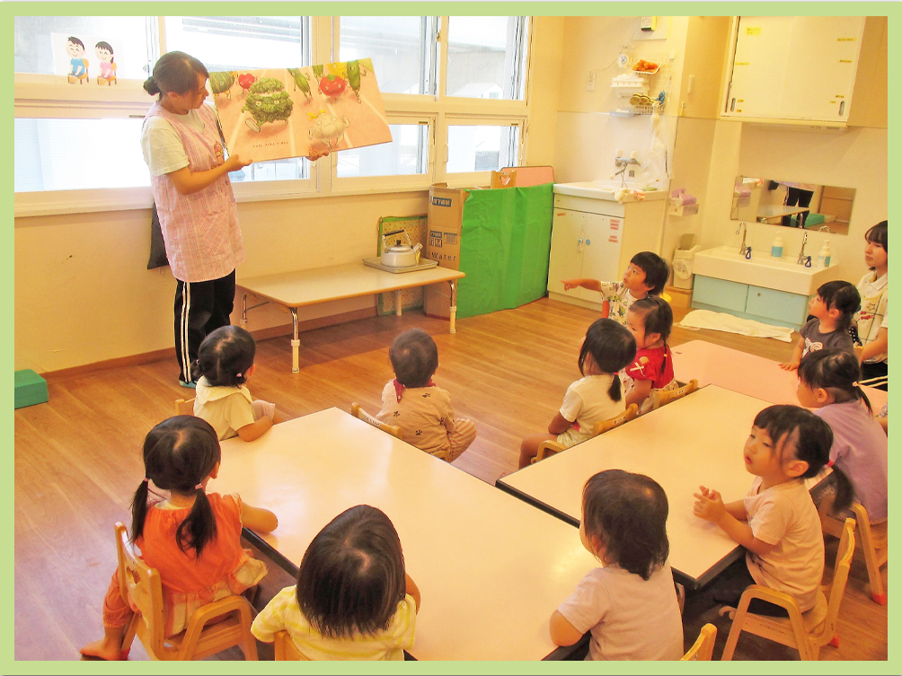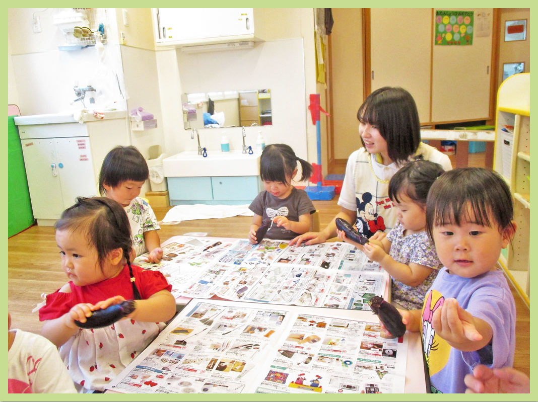 野菜の絵本を見た後にナスを触ってみました