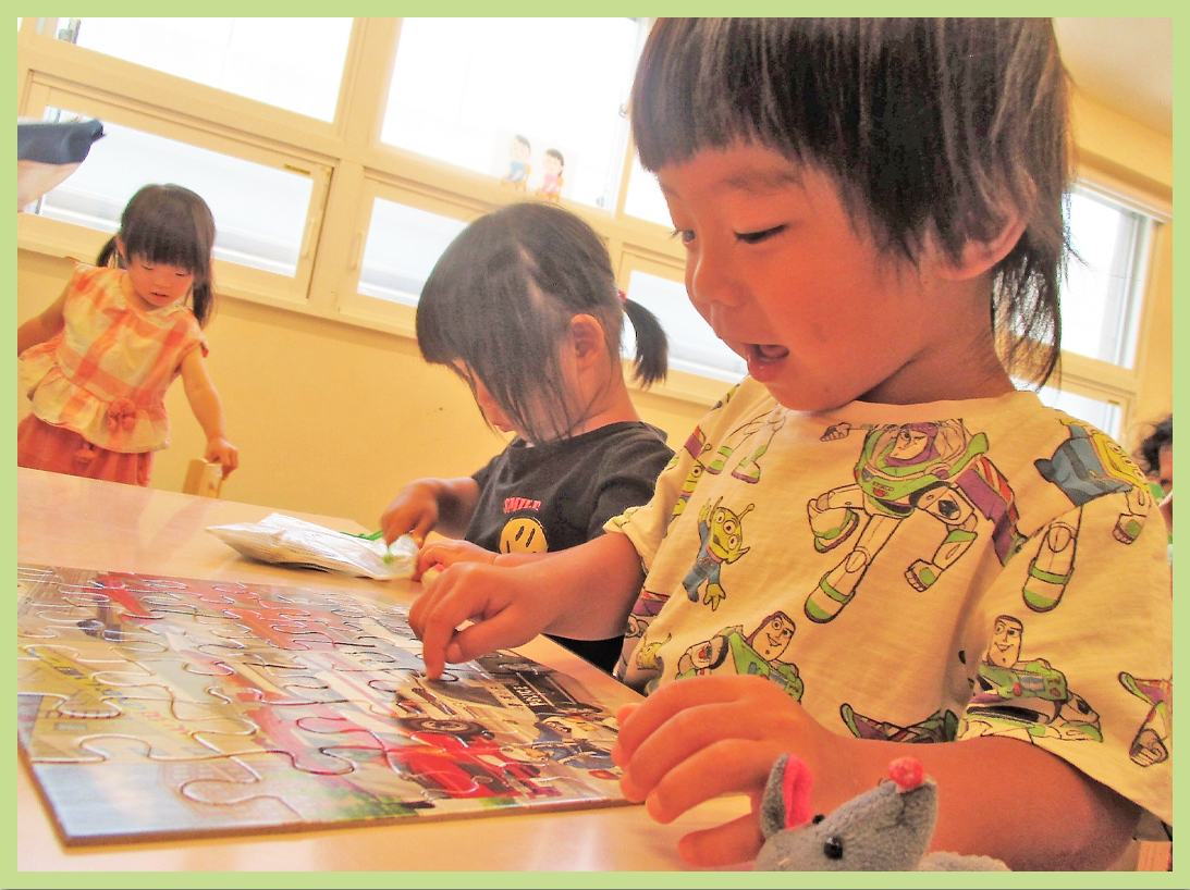 パズルが完成して嬉しそう
