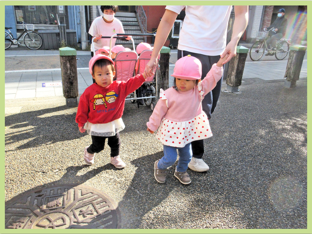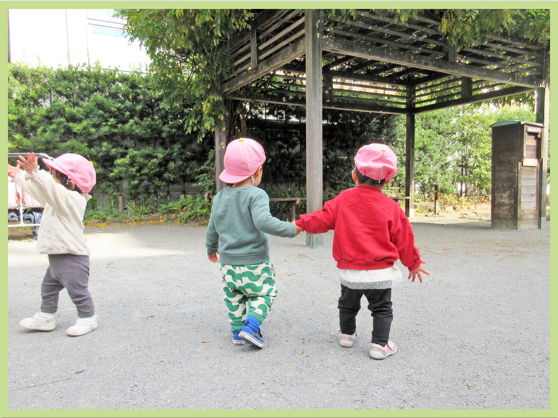 お友だちに興味が出てきていて、公園についてからもお友だちと手をつないでお散歩!