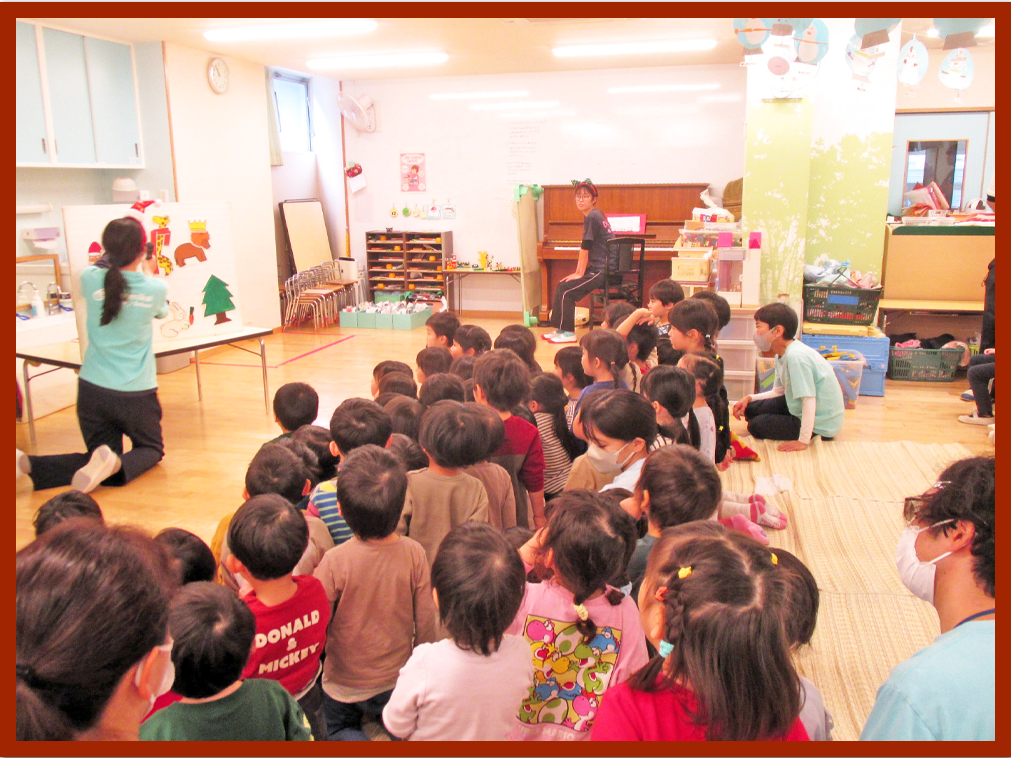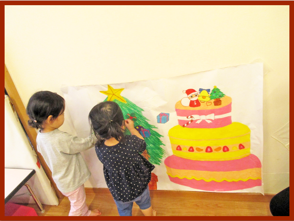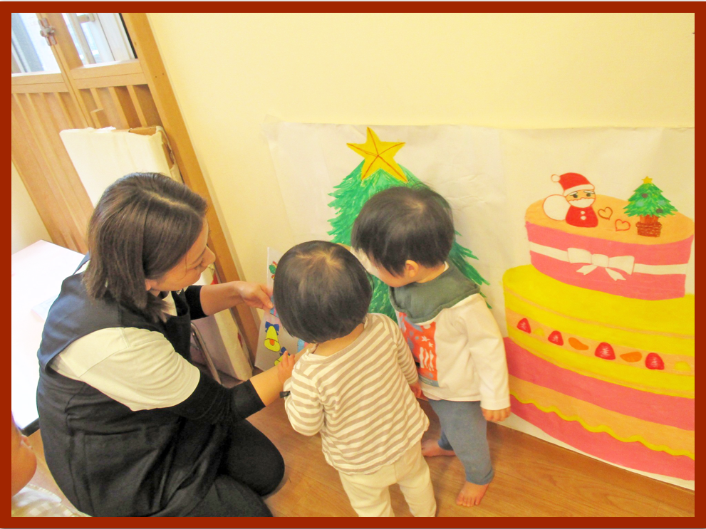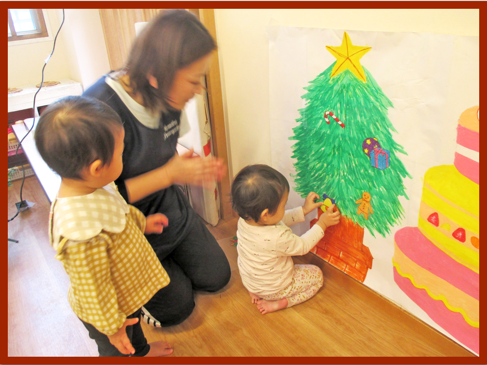 幼児クラスは、クリスマスの飾りをみんなに紹介しました