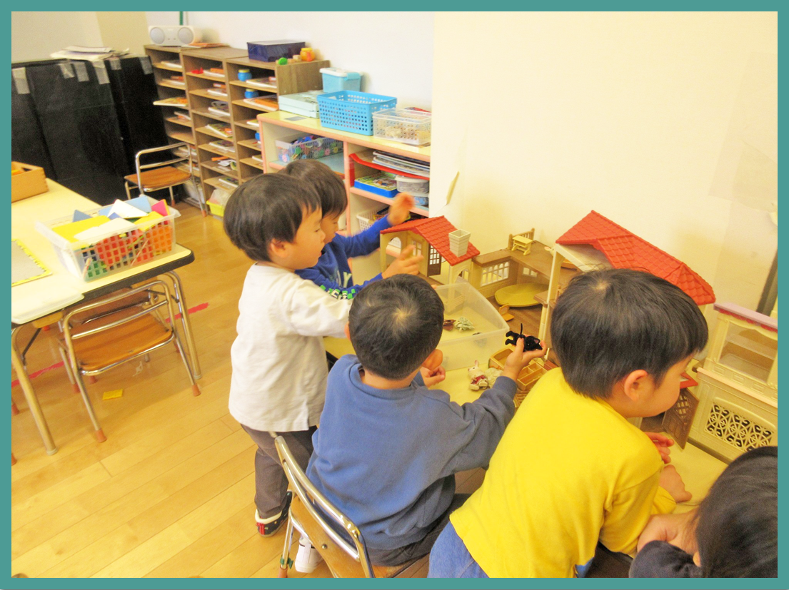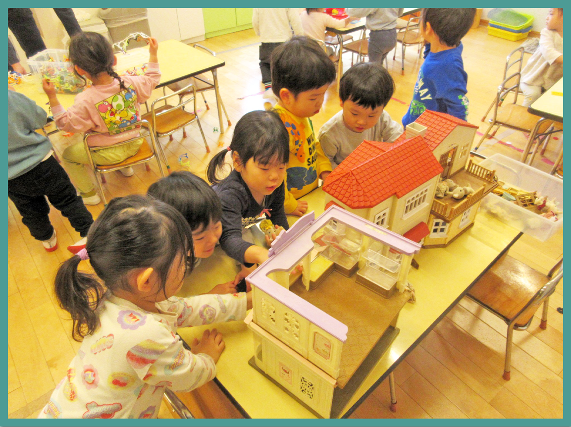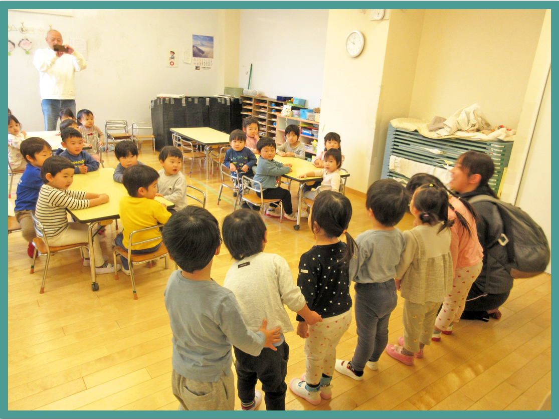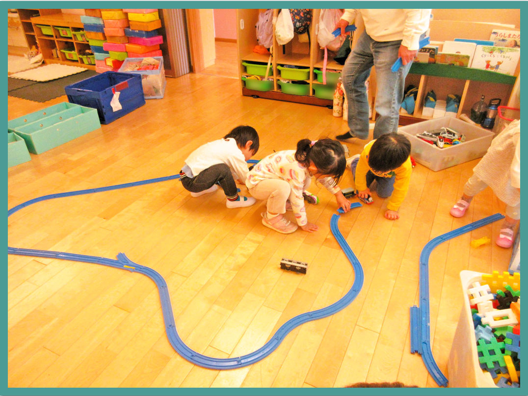 しいのみ保育園の2歳児クラスのお友だちと3歳児の保育室で遊びました