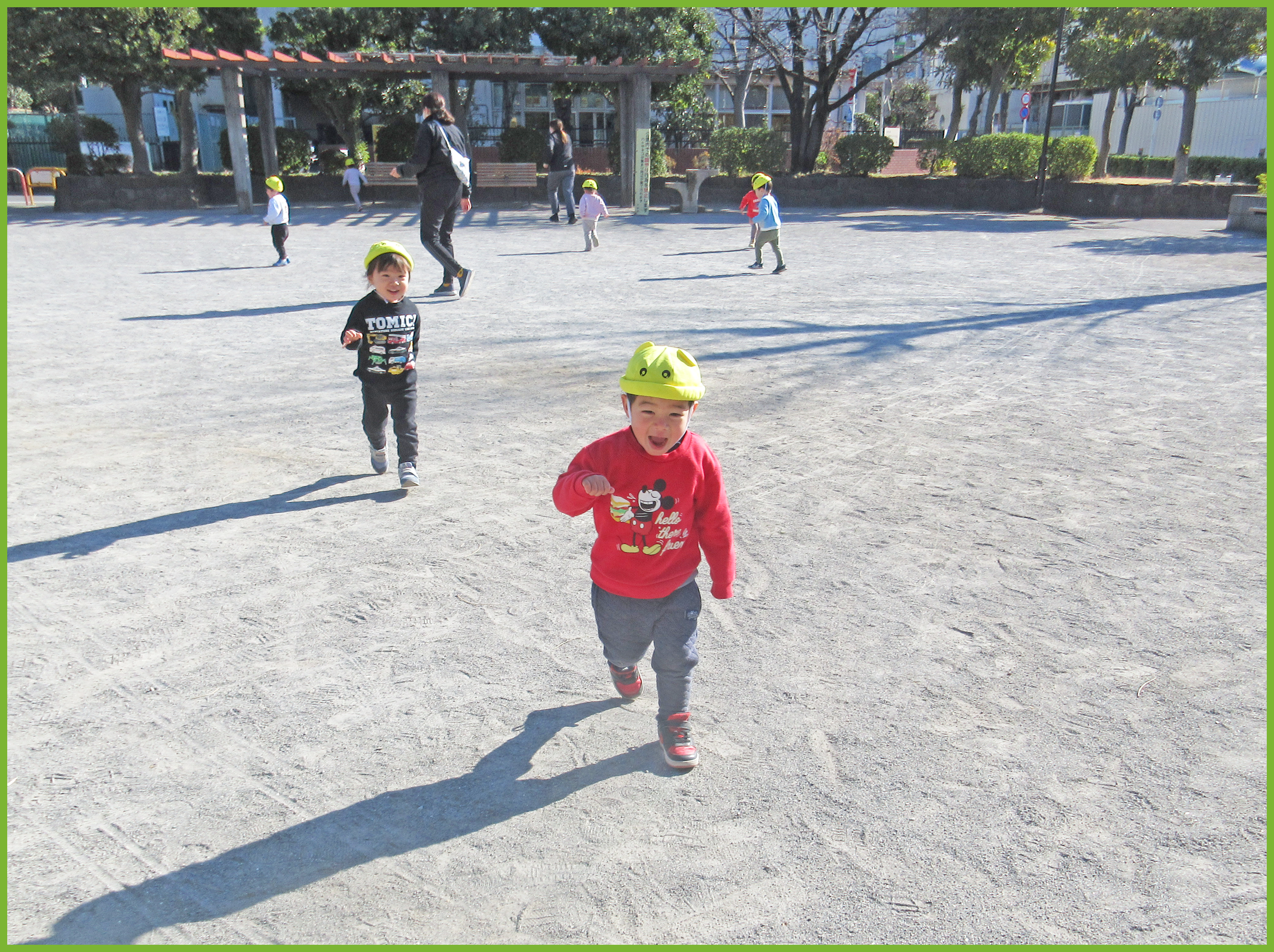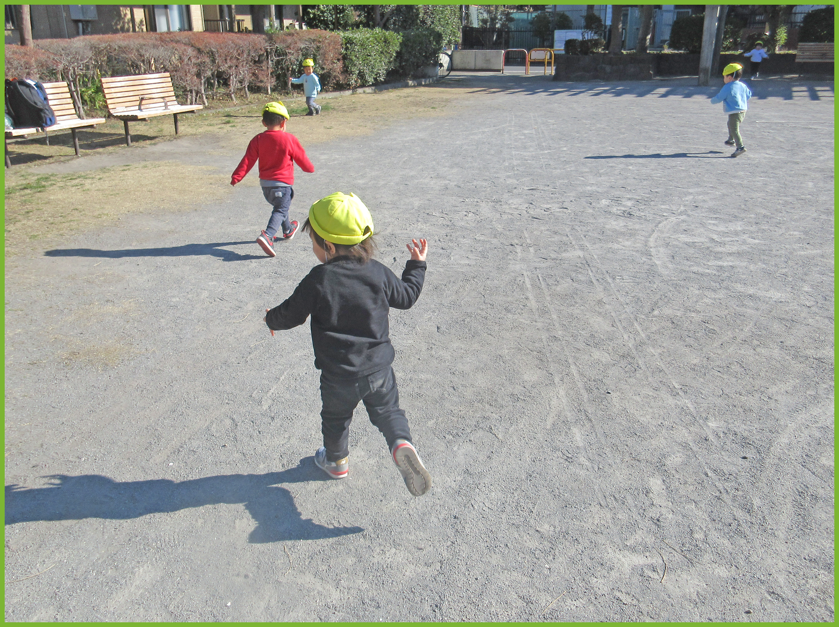 今日は、東一公園で追いかけっこやかくれんぼをしました。