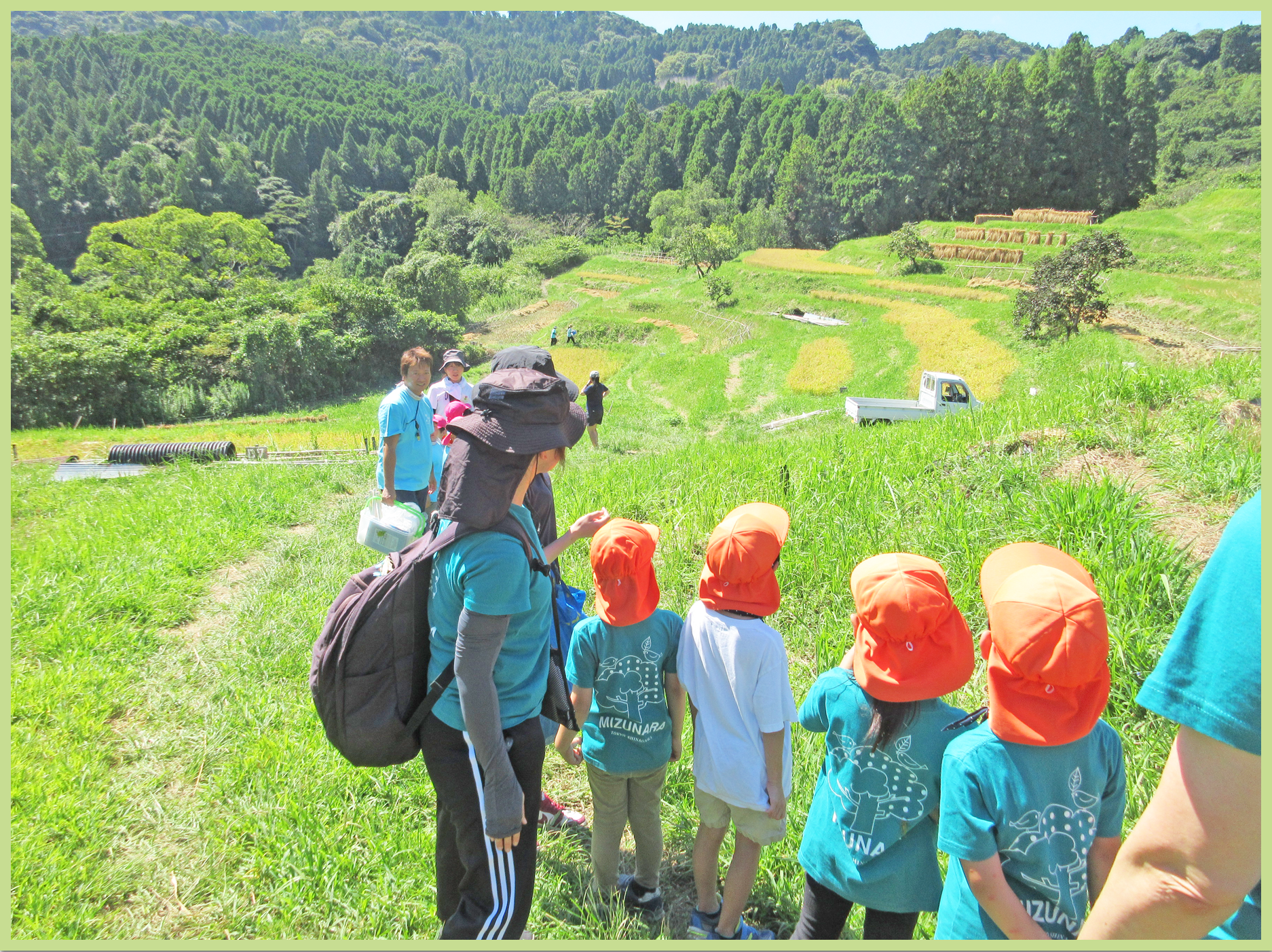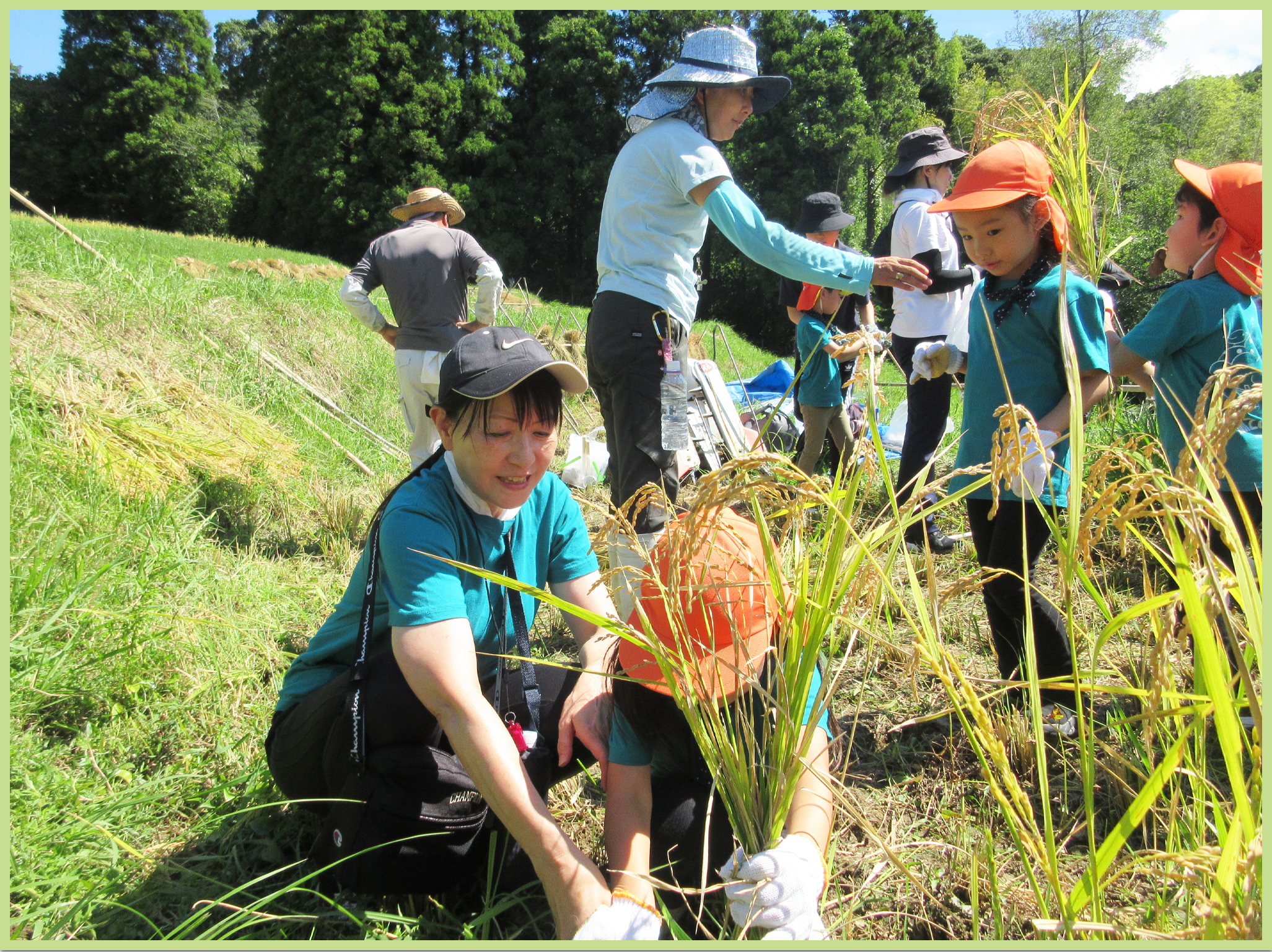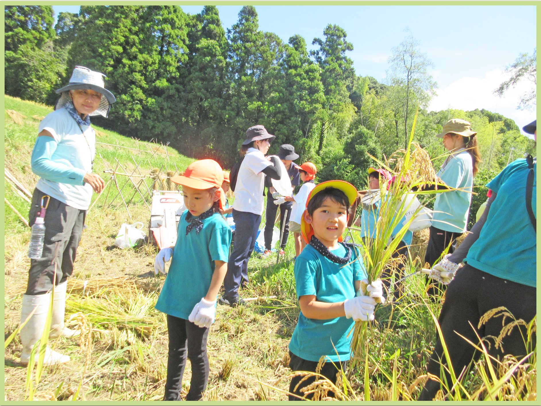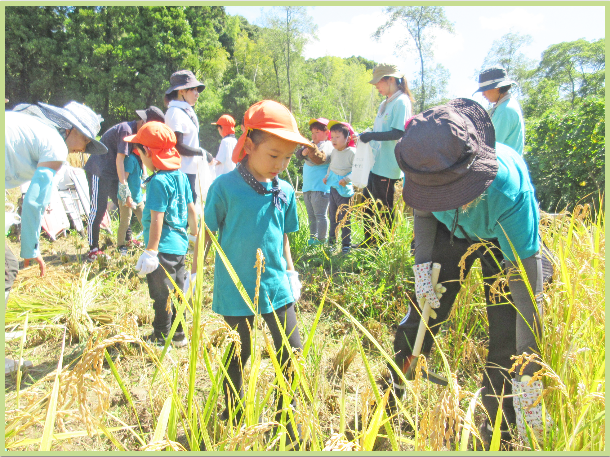 5歳児 たいよう組、稲刈りの様子