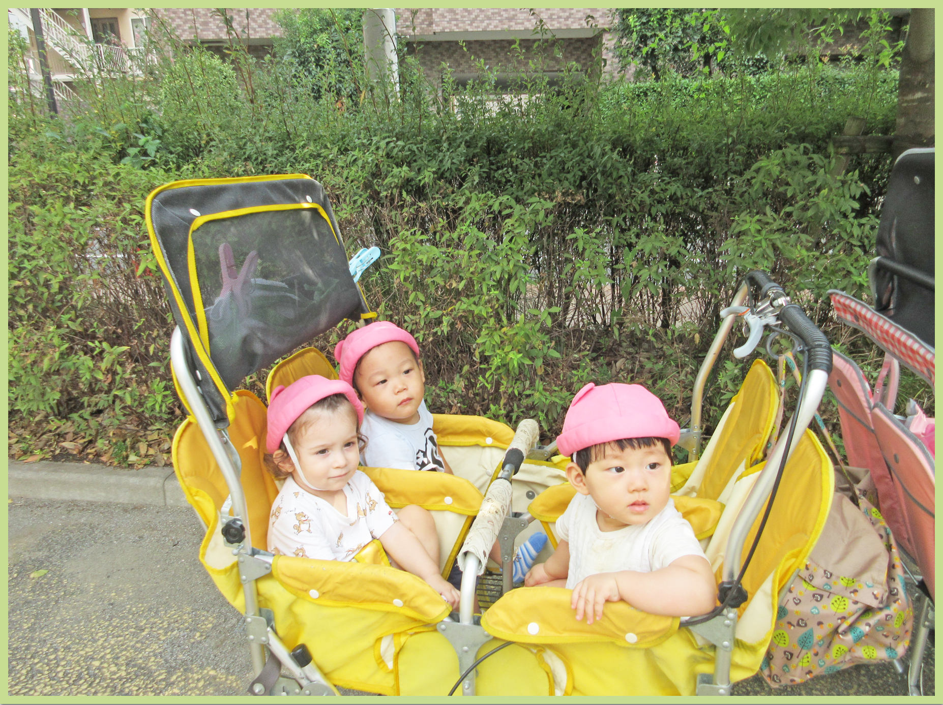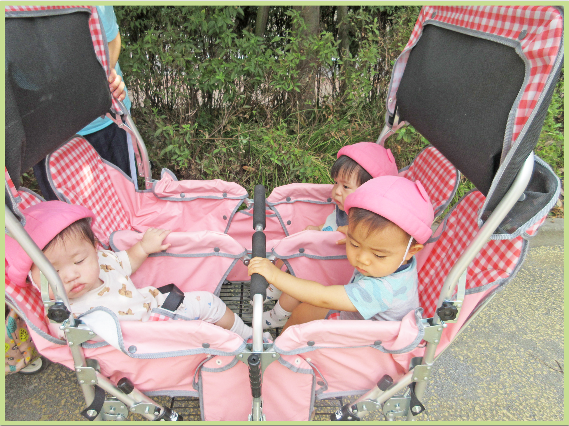 今日は東品川公園に行ってきました。うみ組のお友だち全員、座位が安定したことで、バギー2台で行く初めての散歩です♪ 公園までの道中ではバスやタクシーを発見してじっと見つめたり、公園内では草花や遊具を指差して興味を伝えたりと、見える景色を楽しんでいました??また、木陰に入ると木を見上げて風で揺れる様子を見守っていました。久しぶりに戸外での活動が出来、とても楽しそうでした。