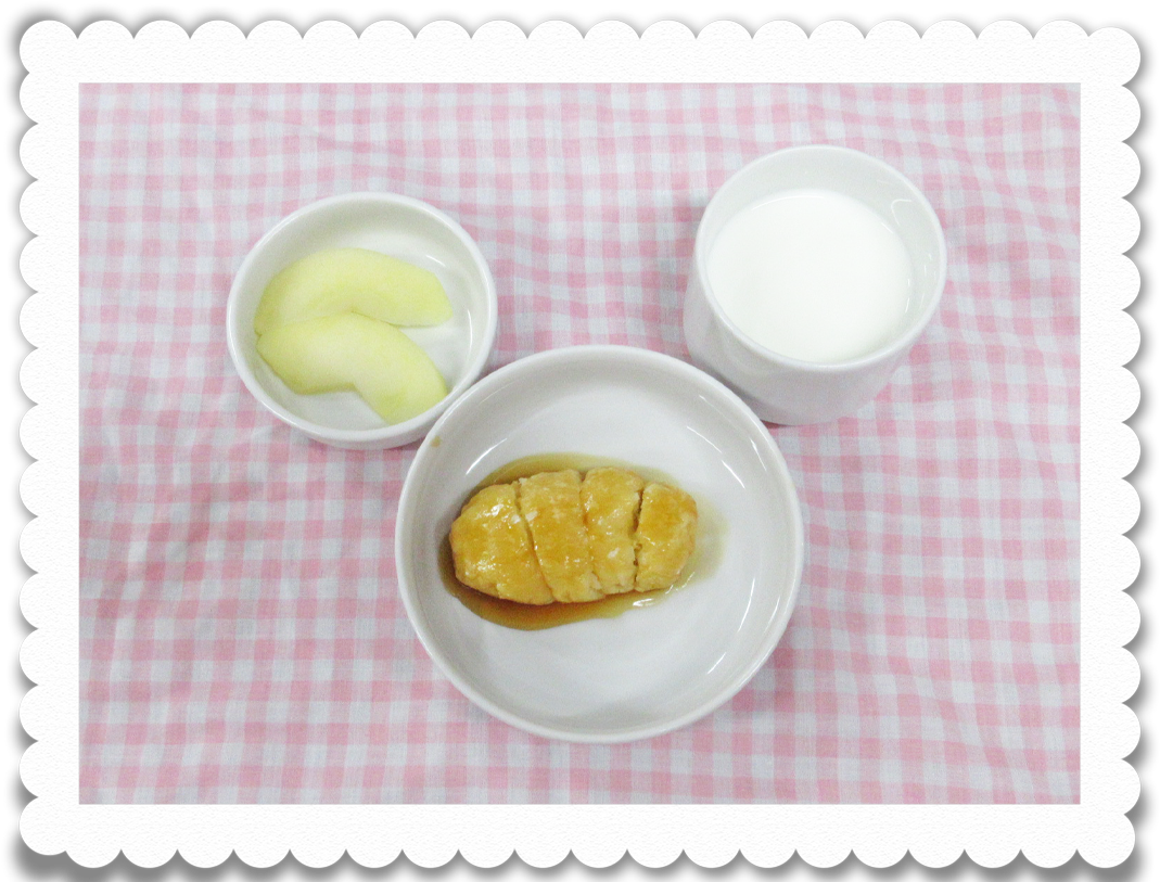 【幼児おやつ】牛乳、じゃが芋の揚げもち、果物