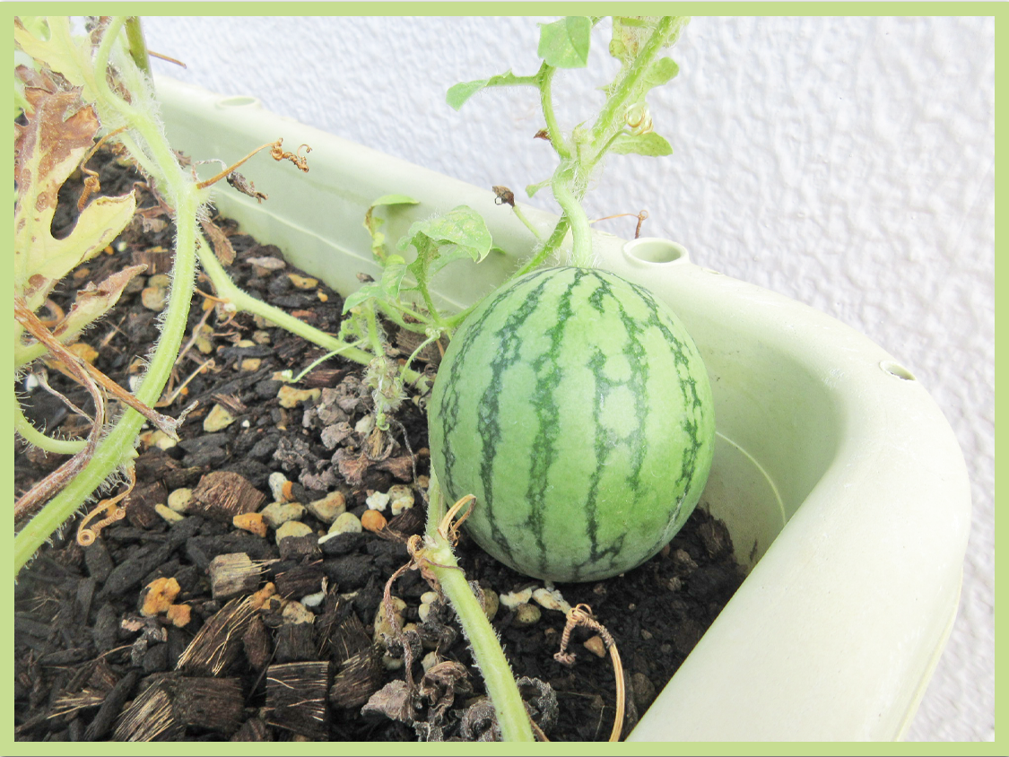 みつばち組で育てていたスイカの苗に、ついに…スイカがなりました!