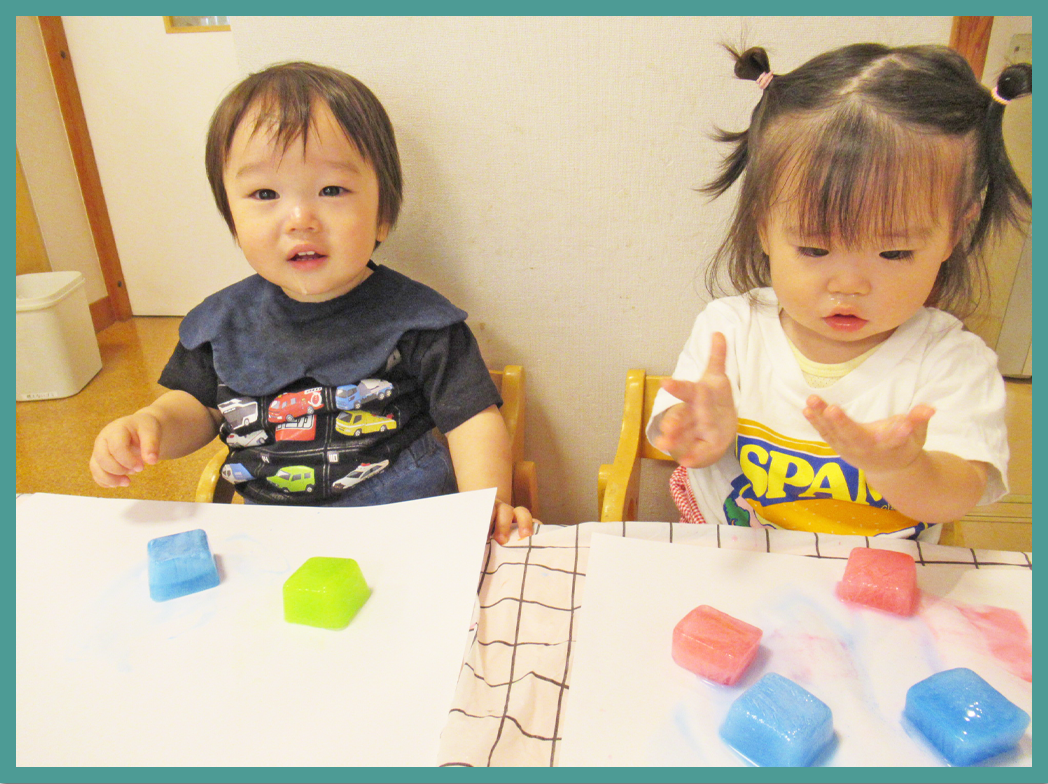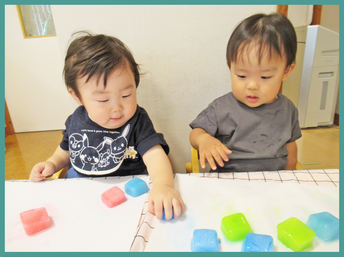 0歳児 ありんこ組 色水氷遊び