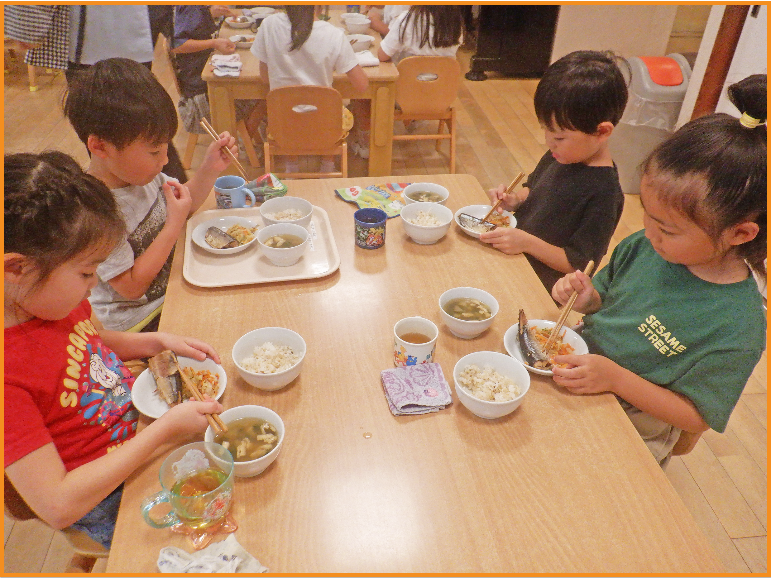 「こんなに骨があるなんて知らなかった」「自分で骨を取るのって大変」と言いながらも上手に骨を取って食べていました。