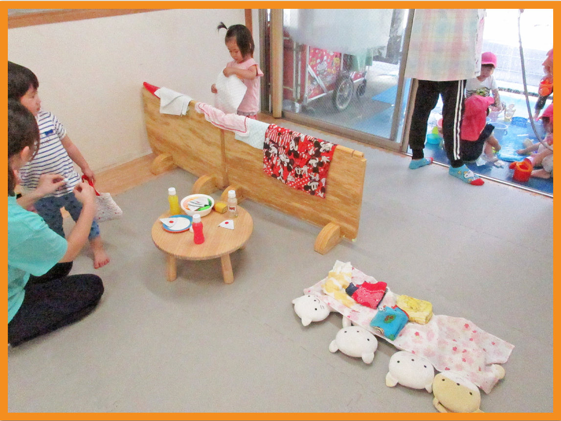 その合間には、洗濯を干したり、病院へ連れて行ったりと、遊びが発展し微笑ましく感じられました。