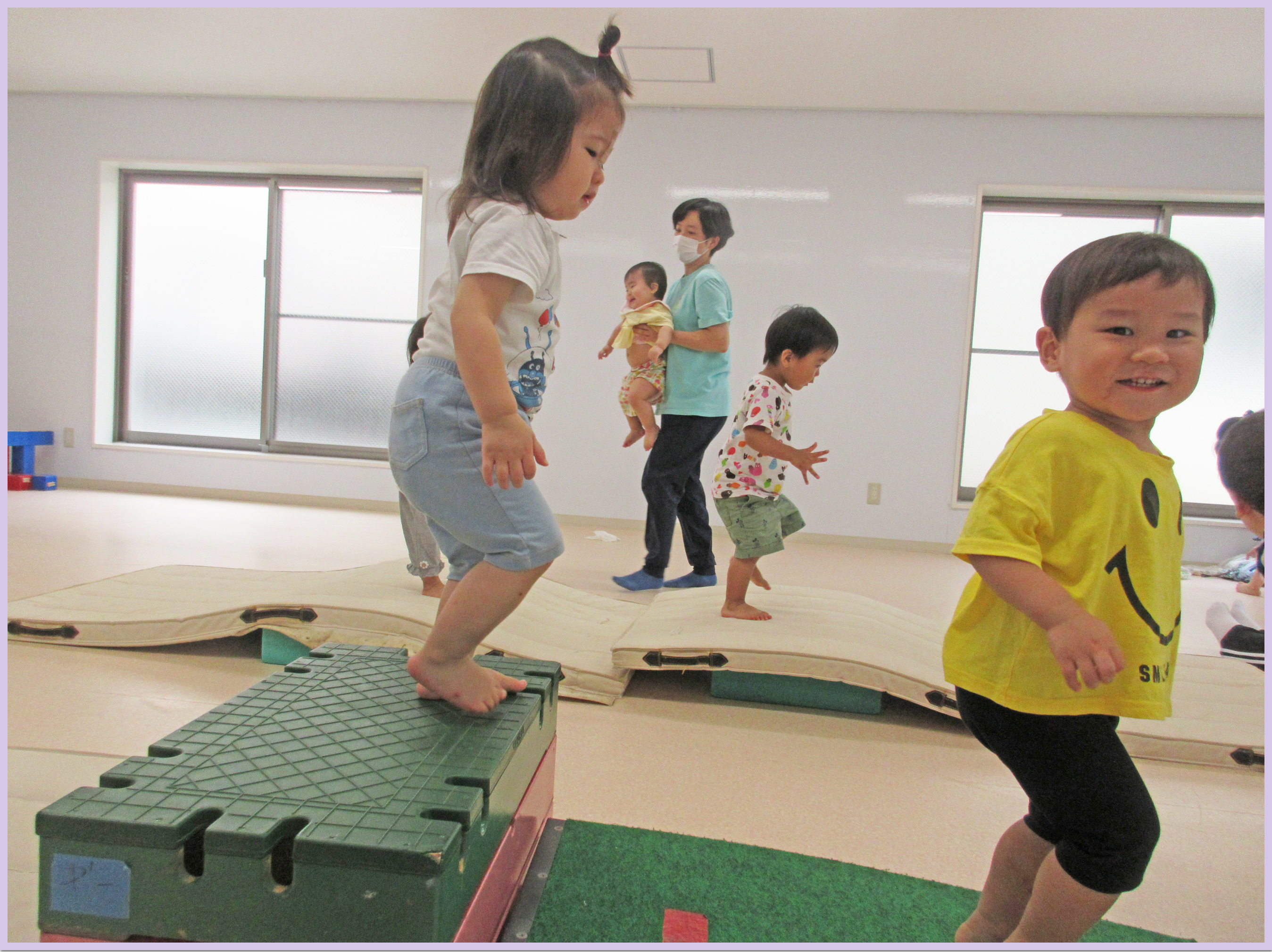 0歳児、1歳児ともに楽しめるように、マットの山をメインにしました。