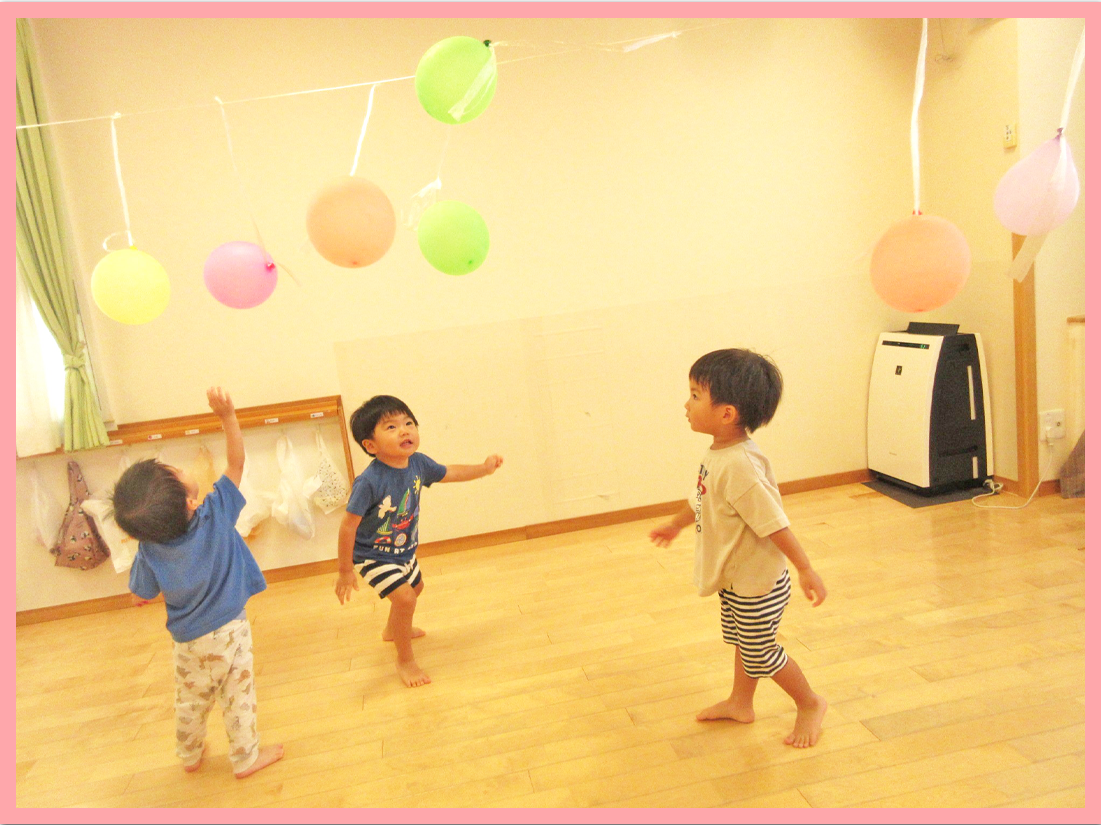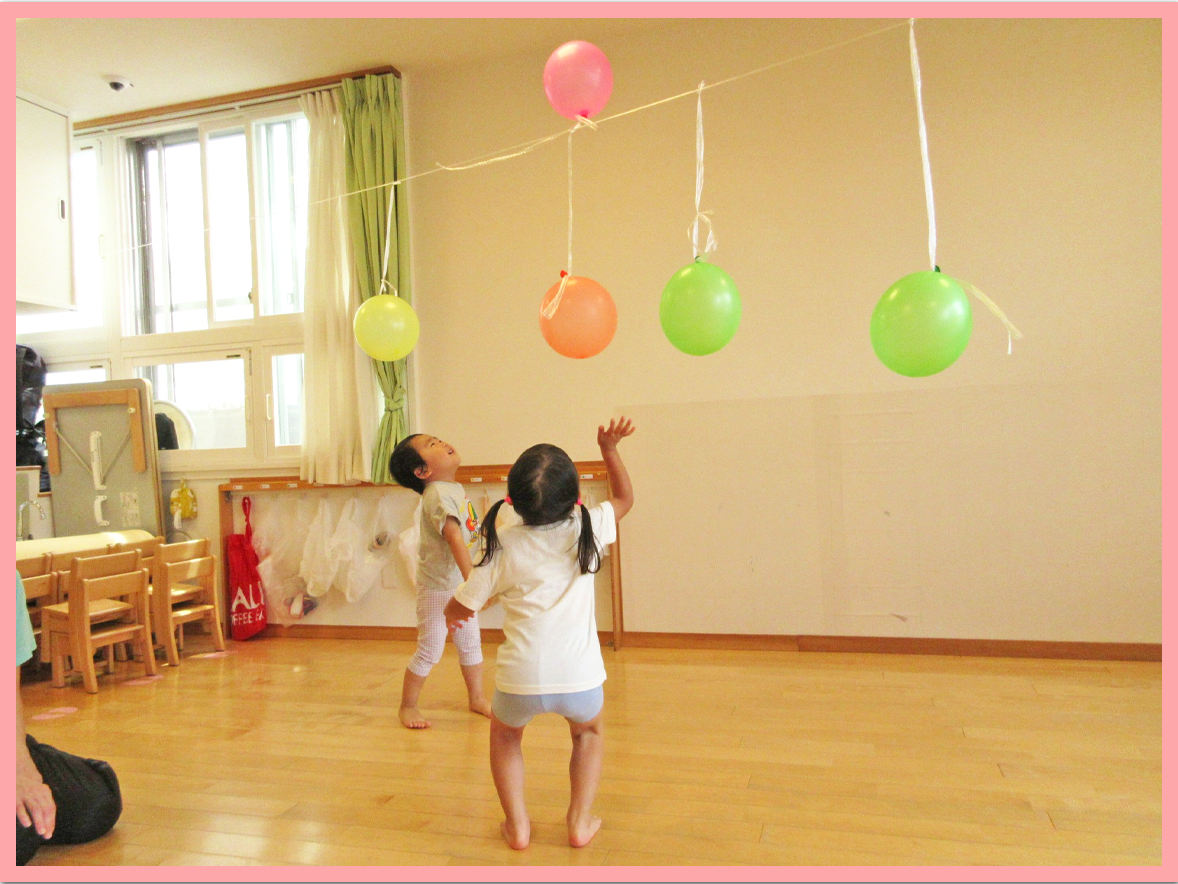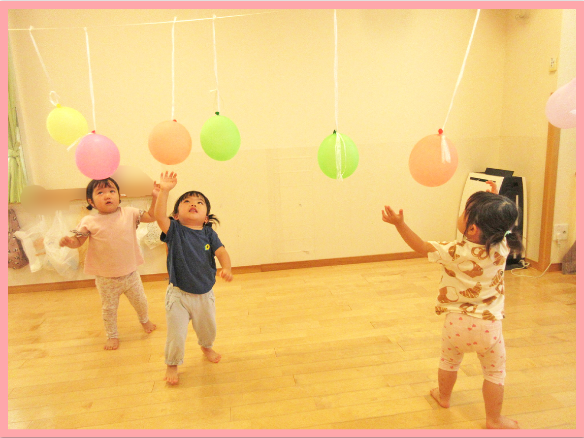 初めは背伸びをして風船にタッチをしたり捕まえたりして遊んでいました。