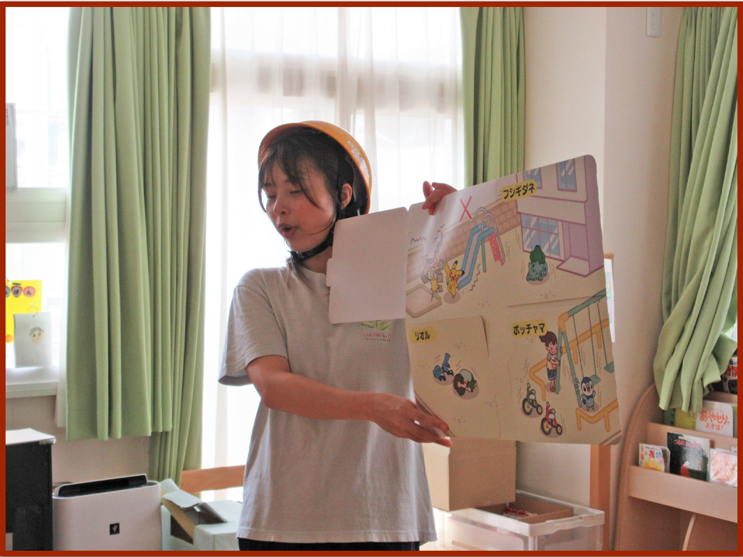 一年に一度の防災訓練を実施しました。この訓練では大地震を想定して普段よりも訓練の方法を充実させたり、幼児クラスでは防災についての理解を深める集会を行ったりすることで自分自身の身の守り方について知識を深められるようにしています。
