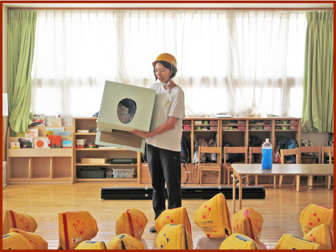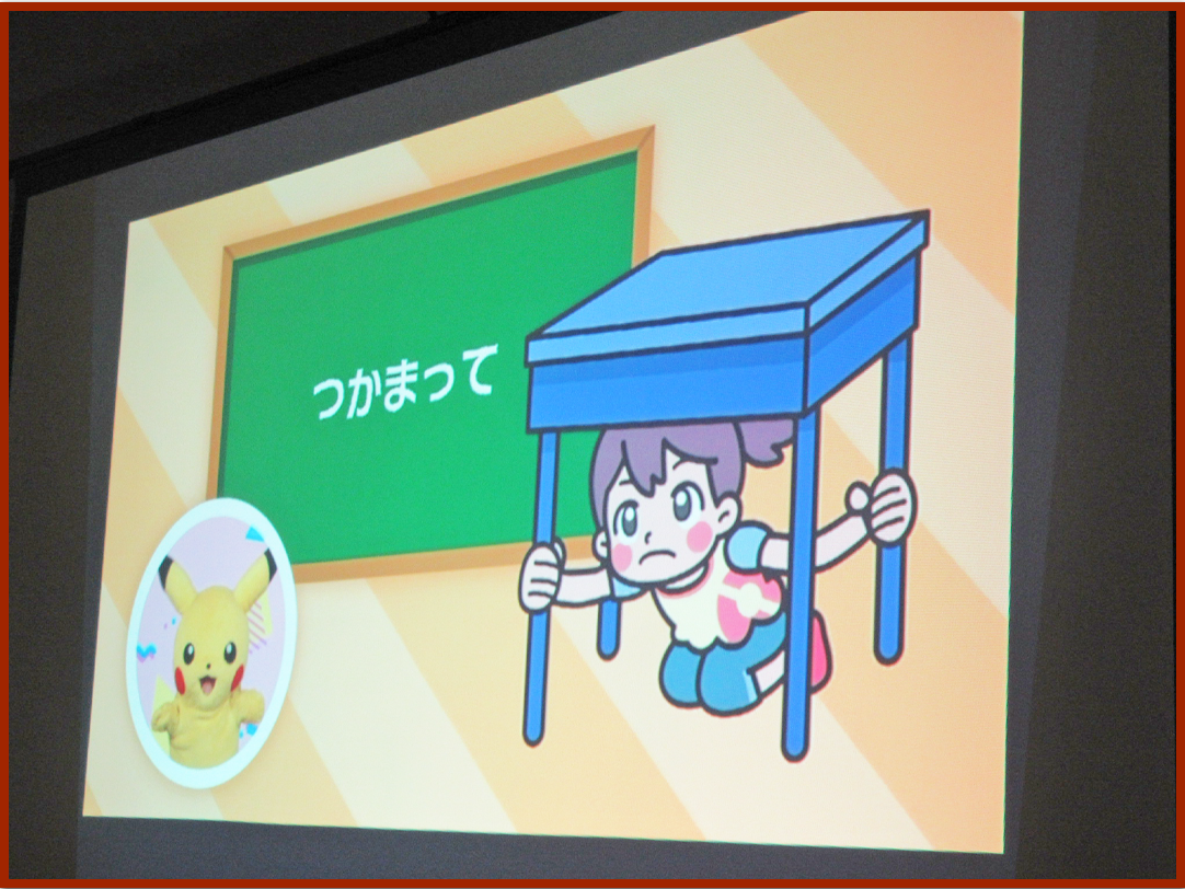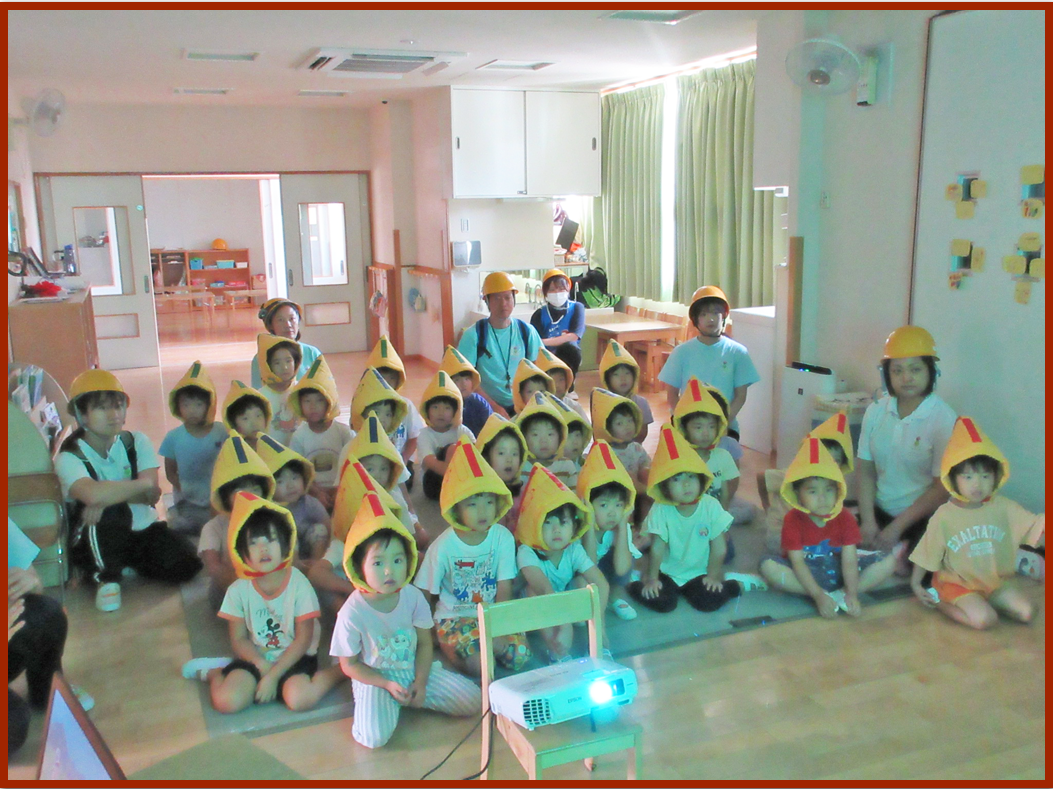 地震から身を守る方法については動画を見て学びました。とても集中して見ていたこどもたちです。