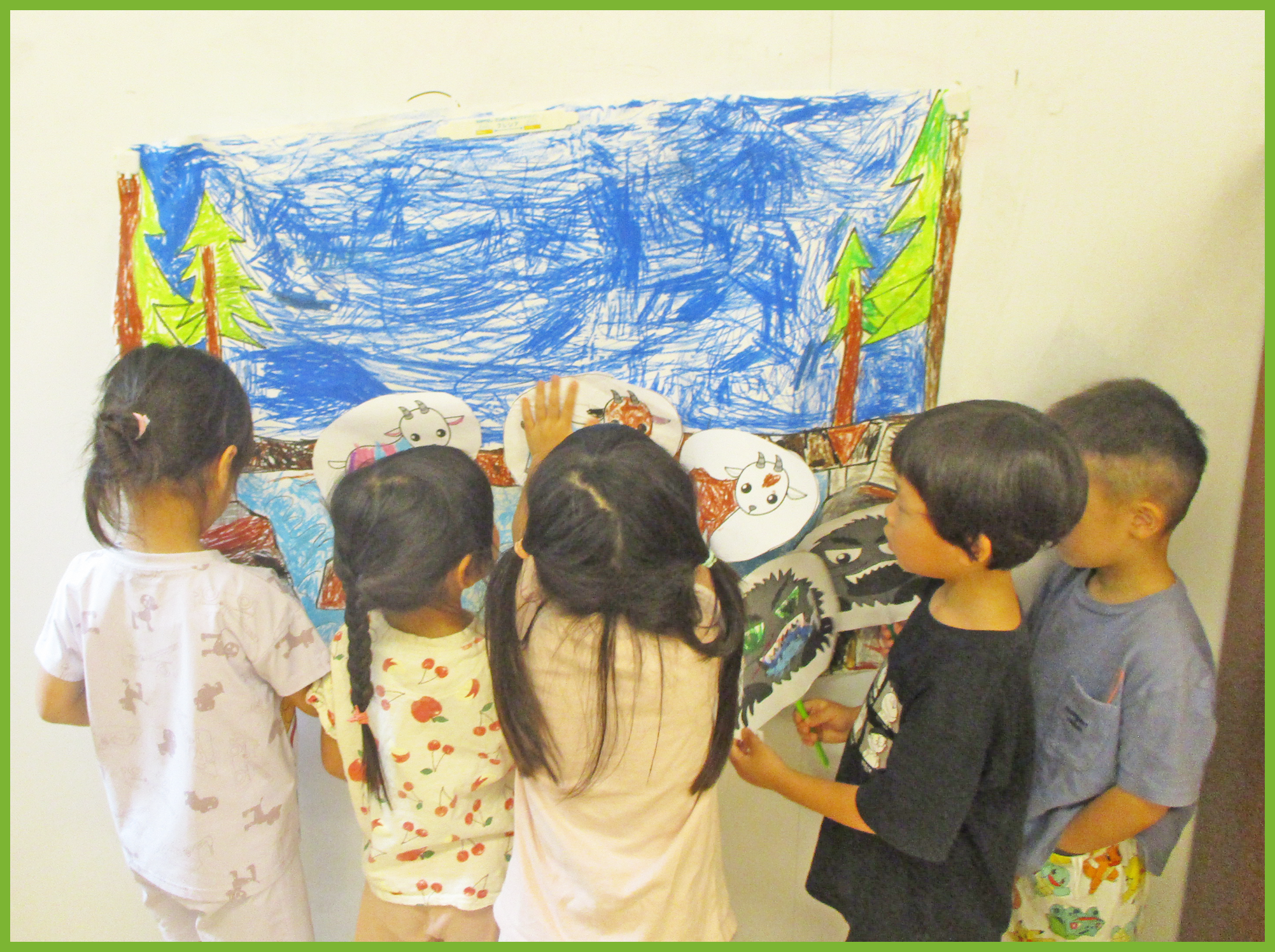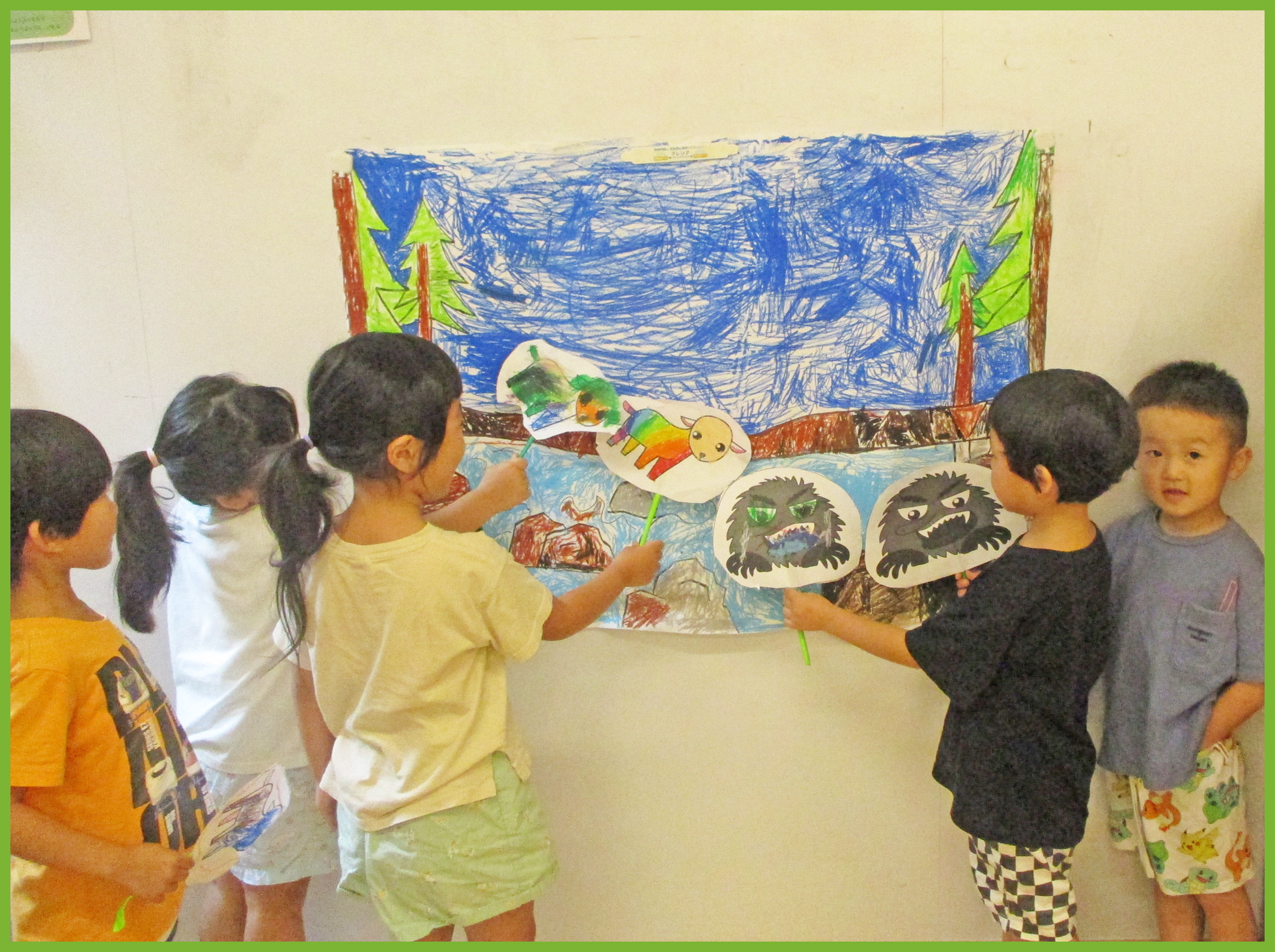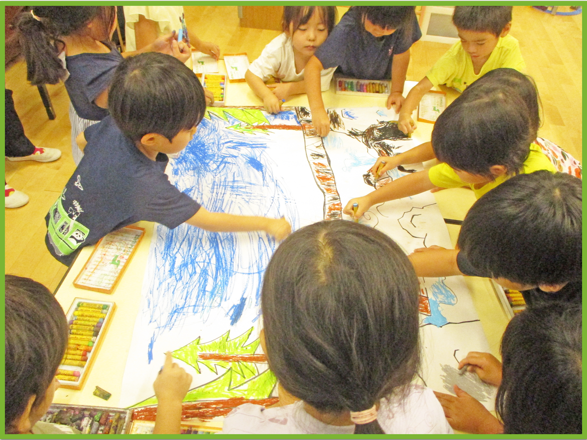 線を描いたり、点をつけたりで色とりどりの花火ができました