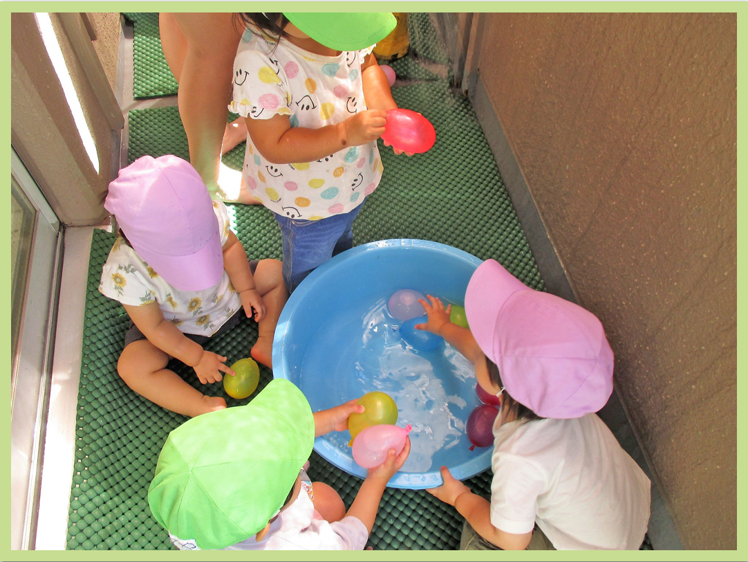 ベランダで水遊び