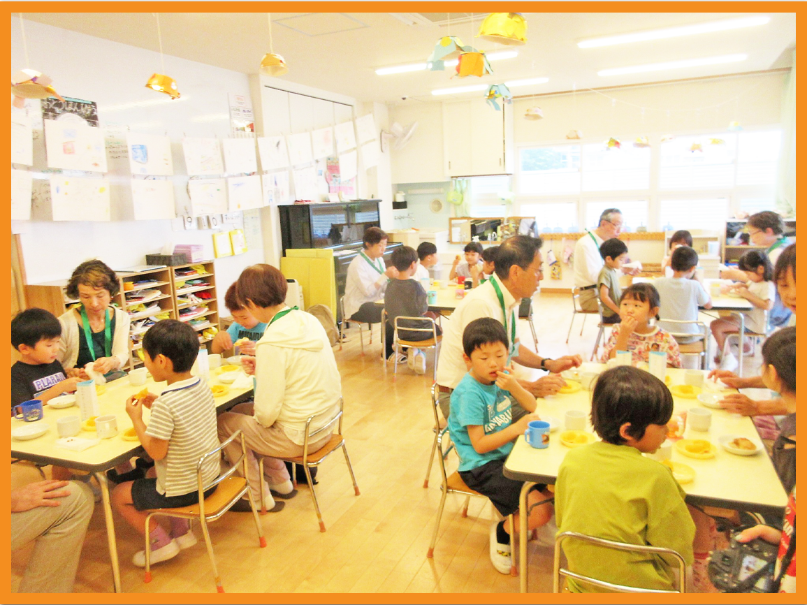 わらべうたなどの触れ合い遊び、一緒におやつを食べて過ごしました