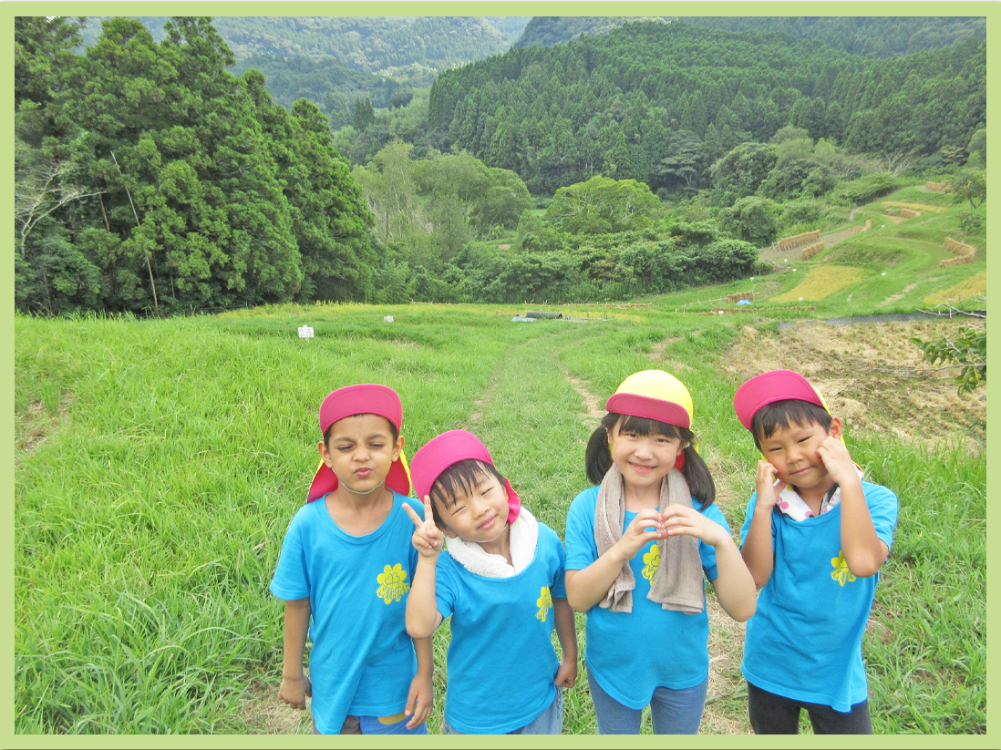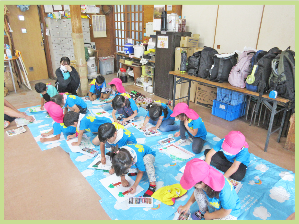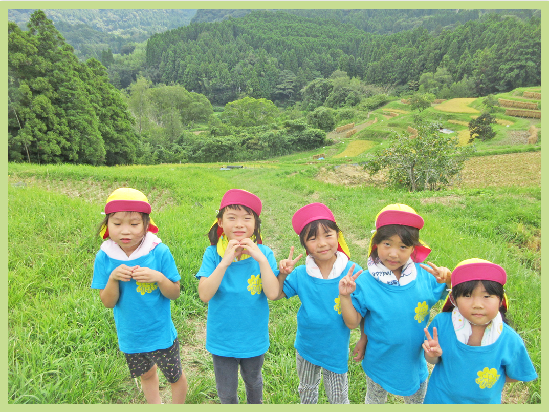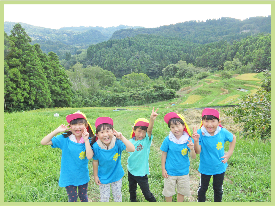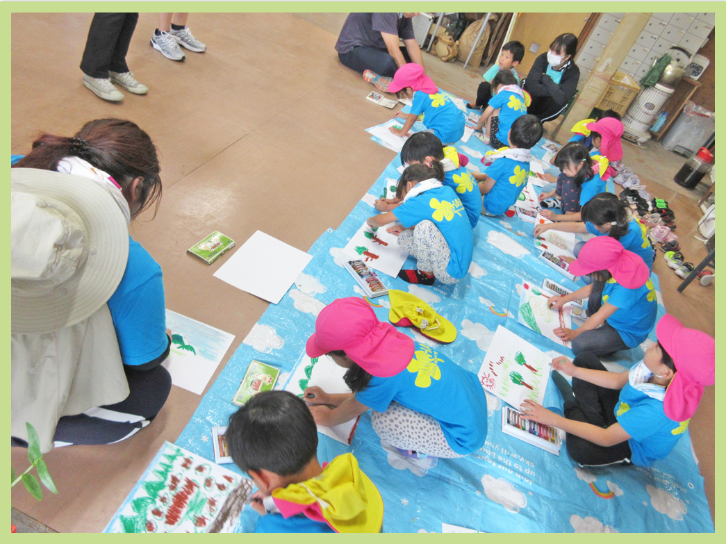 今日はバスに乗って千葉県鴨川市の大山千枚田に園外保育に行きました。お友だちと一緒にバスに乗る楽しさを感じ、景色を見たり、レクをしたりして大盛り上がりのこどもたち。山手線ゲームでは、「いぇーい」と掛け声をしてくれたり、リズムよく拍手をしてくれたりし、とても楽しそうでした。緑いっぱいの景色を見て、風景画をしました。こども一人ひとりの絵に個性があり、とても上手に描けていました。お弁当の時間では、おいしそうに口いっぱいに食べている姿が可愛らしかったです。帰りのバスは、疲れからか、お昼寝をしていたこどもたちでした。