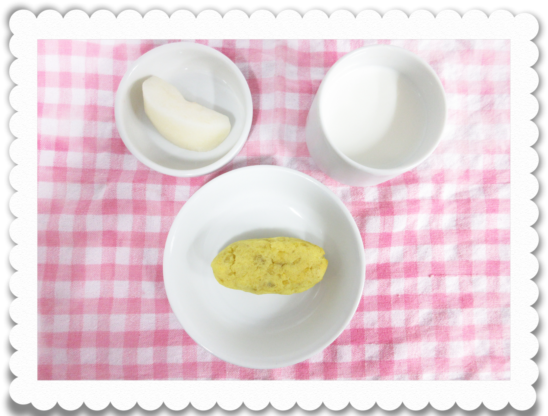 午後食:スープパン粥、含め煮、みそスープ、果物