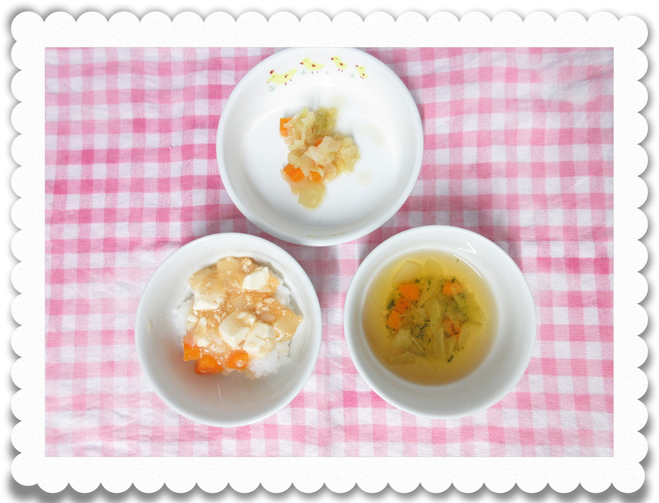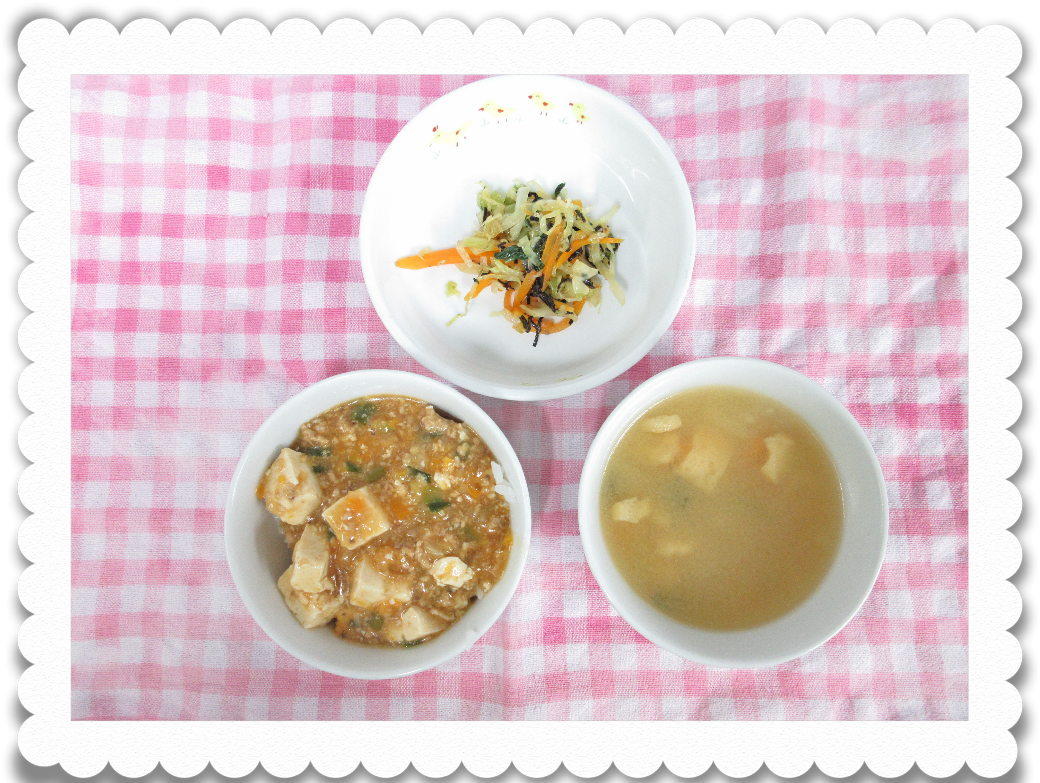 【幼児給食】麻婆丼、のり和え、みそ汁