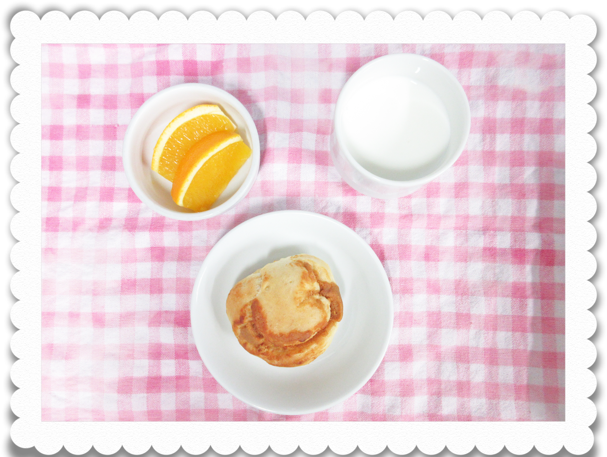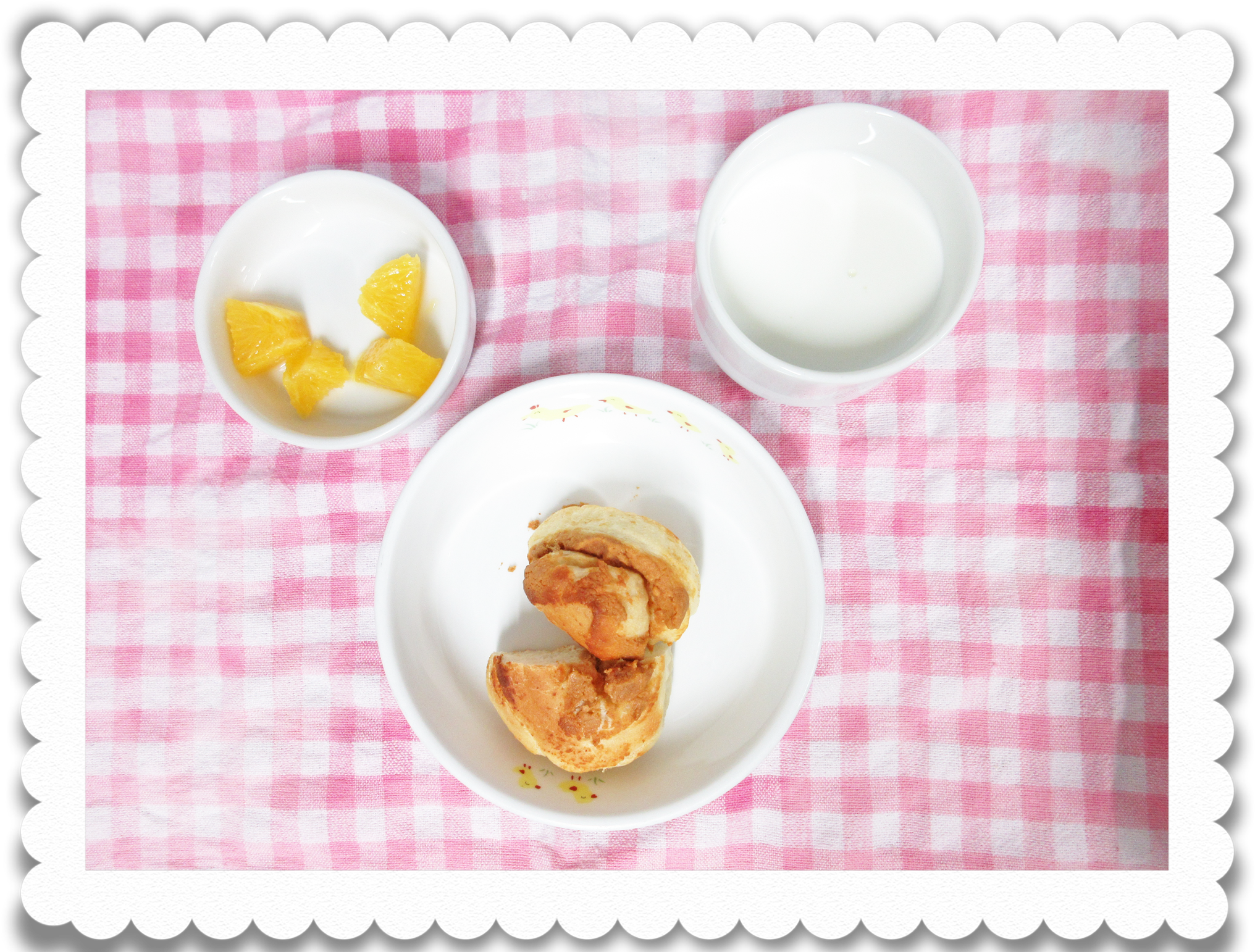 【幼児おやつ】牛乳、手作りきな粉パン、果物