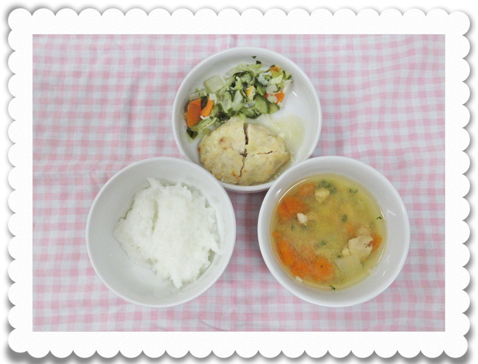 午前食:全粥、鶏ひき肉のみそ煮、おろし煮、みそ汁