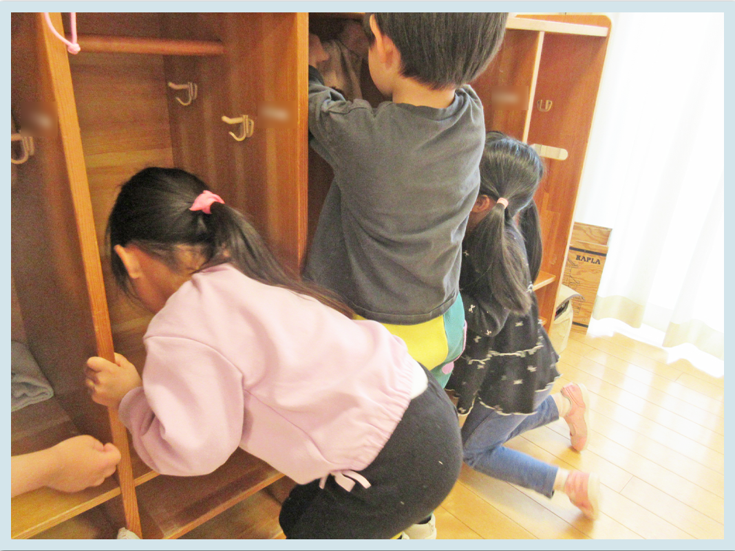 ロッカーを拭いたり引き出しの中の洋服を畳み直したりと、整理整頓もできるように。「もっとやりたい!」、「他にやるところない?」と積極的に掃除をするこどもたちの姿も見られ、成長を感じる場面がたくさんありましたよ。掃除を頑張るこどもたちの後ろ姿が大きく感じ、嬉しいような寂しいような…。年度末ならではの不思議な気持ちになりました。