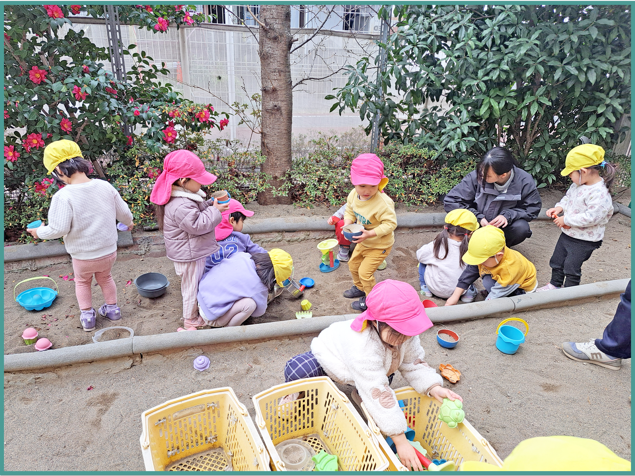 園庭という初めての環境にワクワクしており、のびのびと遊んでいましたよ♪
