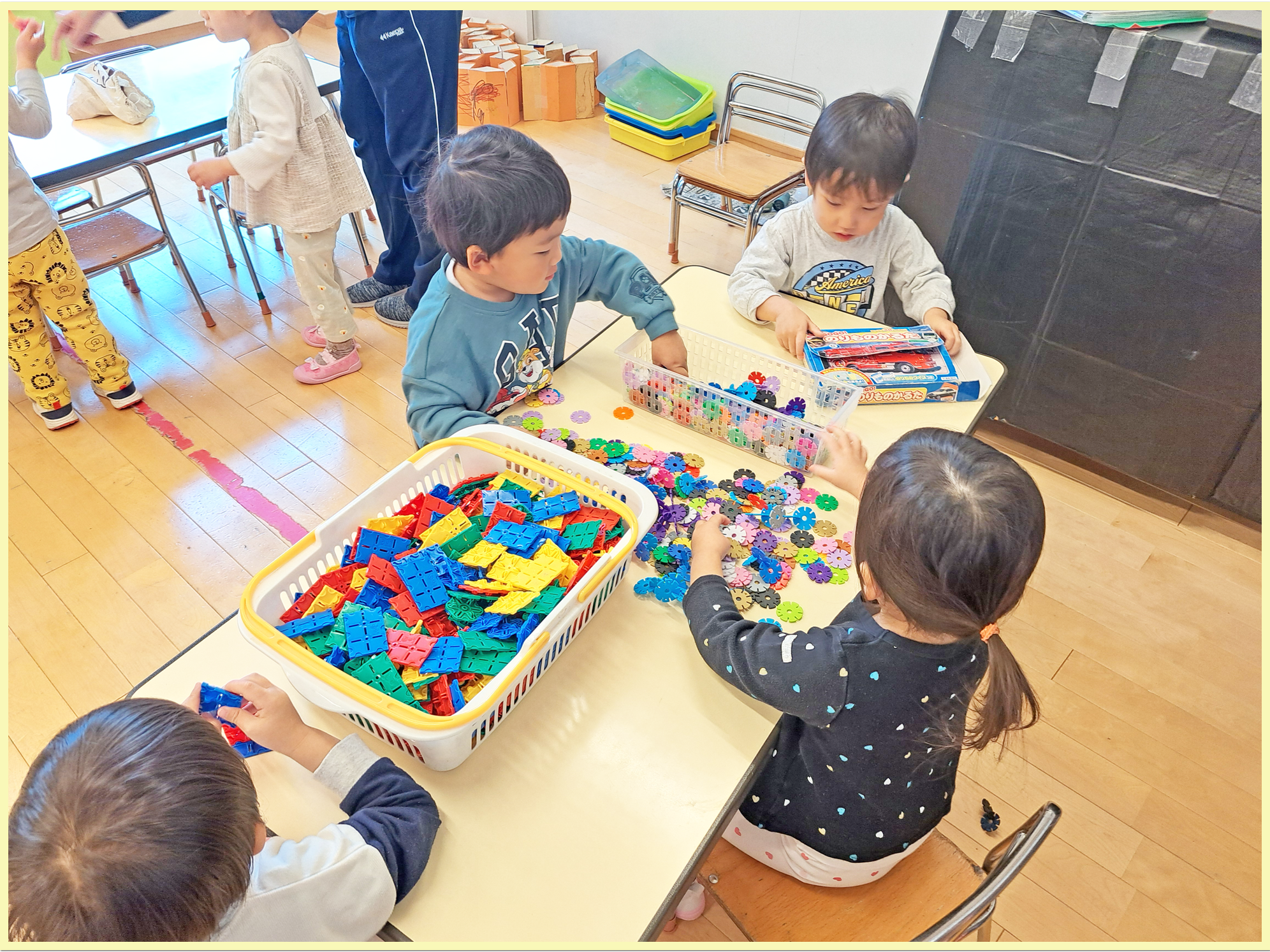 新しく見る玩具に興味津々で、「入れて」などと友だちに伝えて、積極的に交流を楽しんでいましたよ!