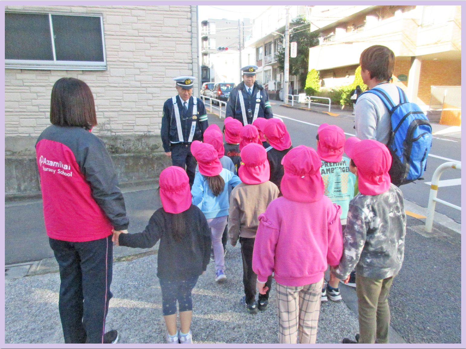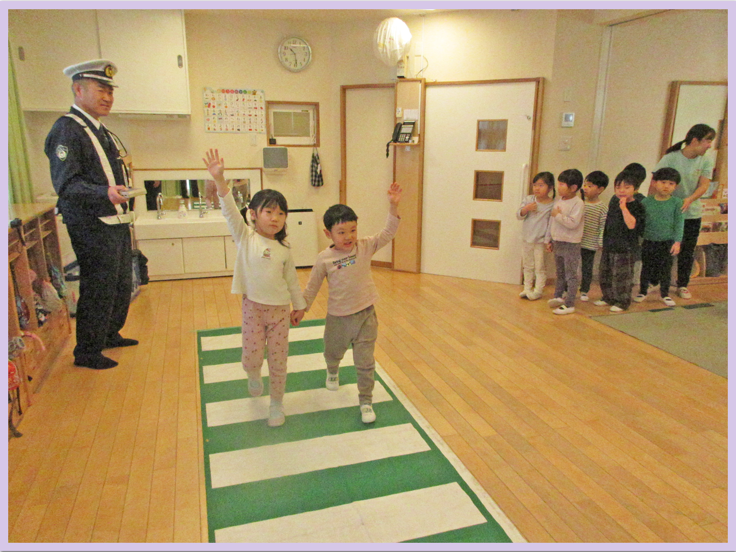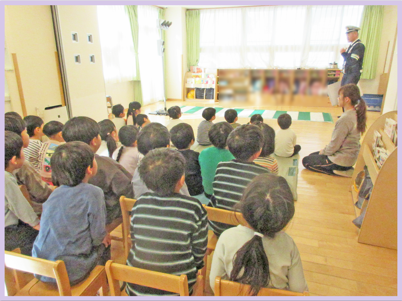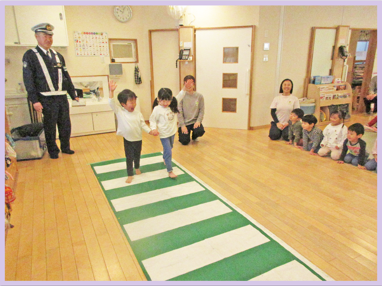 5歳児は、戸外に出て、交通ルールについて、ご指導いただきました。就学に向けて貴重な体験が出来ました。