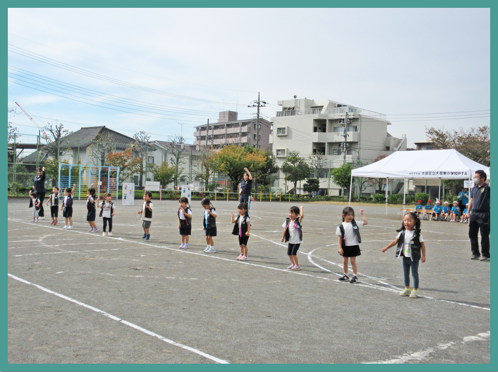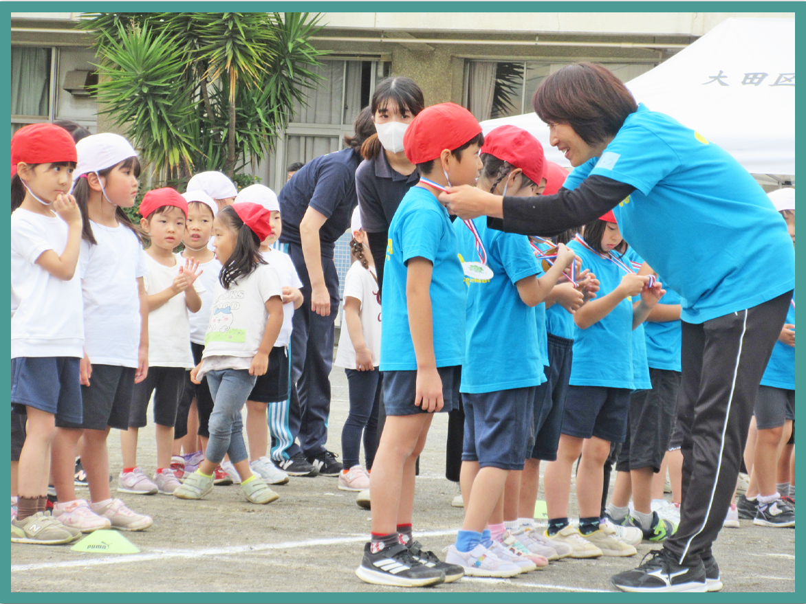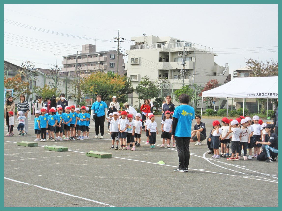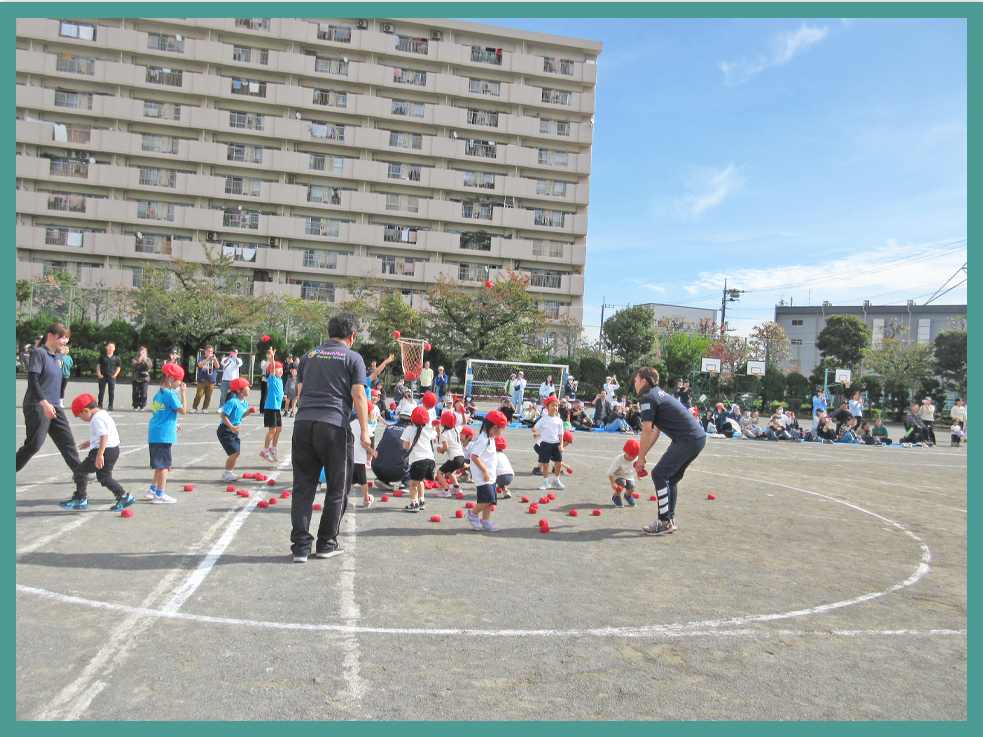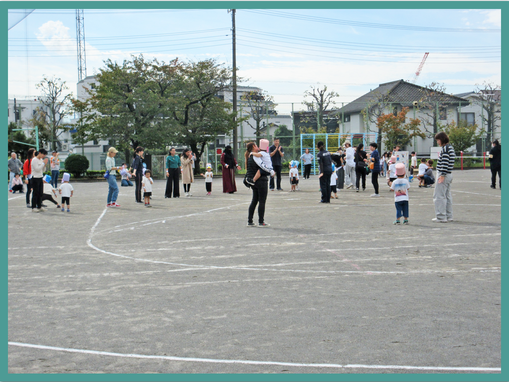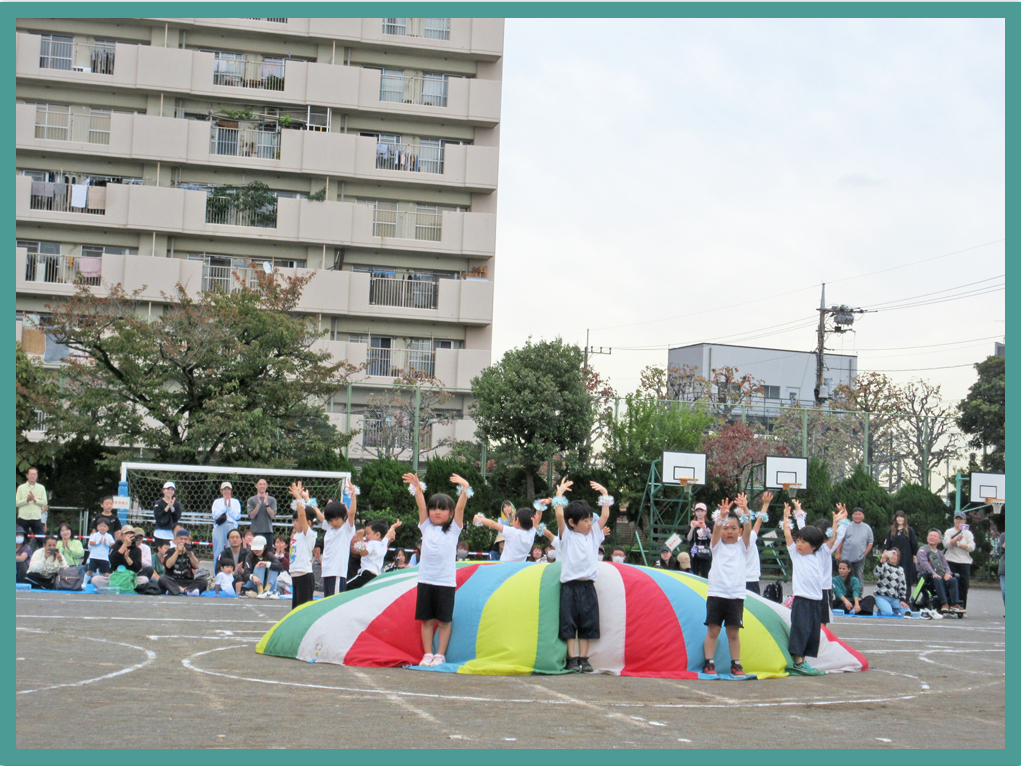 前日は雨が降りましたが、こどもたちの気持ちが天の神様に届いたようで、当日はよい天気になりました。少し緊張した様子もありましたが、来賓や保護者の方に温かい声援をもらいながら、各クラス演技を披露していきました。親子競技では、力を合わせてしっぽとりやダンスなどを楽しんでいました。保護者の方も、クラス対抗の大縄跳びで心を合わせながらジャンプしてくださり、こどもたちも盛り上がっていました。卒園児や地域の方にも参加していただき、みんなで楽しく過ごすことができました。当日に向けての取り組みを含めて、心も身体のまた一つ成長しており、心に残る思い出が増えたように思います。