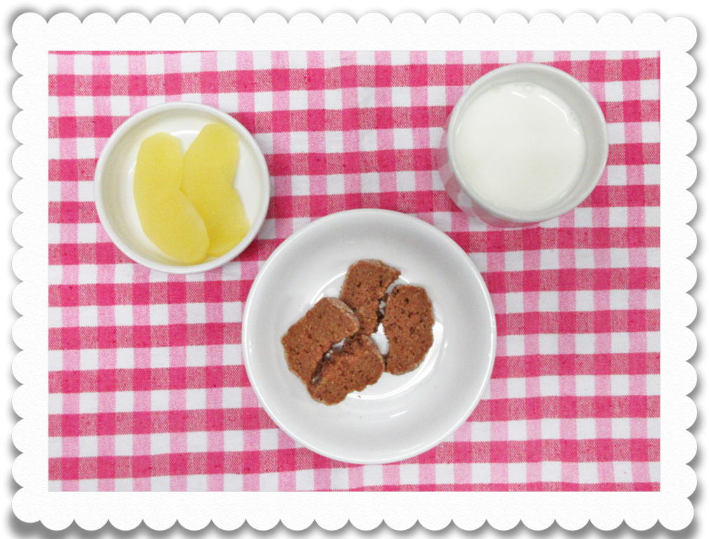 【幼児おやつ】牛乳、ココアクッキー、果物